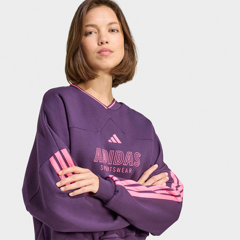 * Felpa sportiva con scollo a V* Vestibilità ampia e confortevole* Maniche lunghe con bande laterali a contrasto* Logo grande e scritta sul petto* Tessuto morbido e resistente* Ideale per look sportivi e casual
