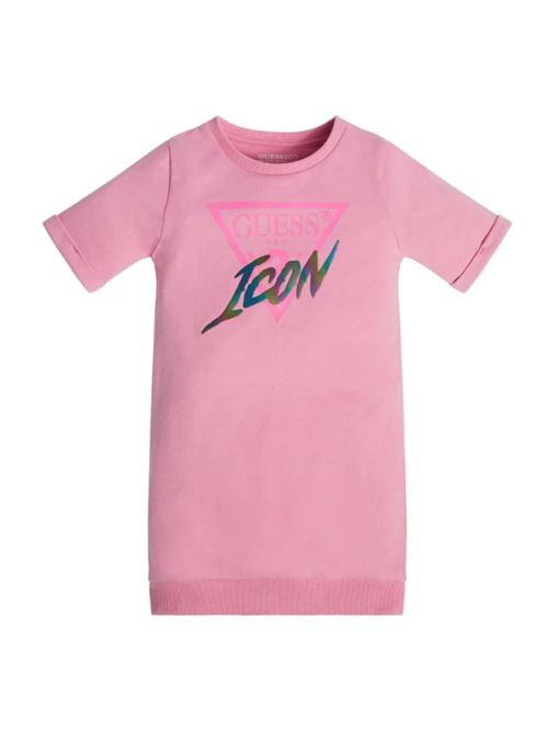 Abito per bambina a pezzo unico con iconico logo triangolo posto sulla parte frontale- Maniche corte- Girocollo- Tinta unita- Orlo dritto- Illustrazione multicolore