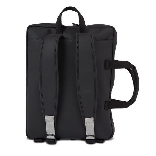 Borsa per laptop con logo in lettering su chiusura a cerniera, il modello possiede delle bretelle che lo trasformano in uno zaino versatile, doppia maniglia