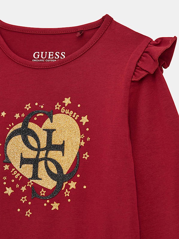Il capo contiene fibre di cotone organico. • T-shirt in misto cotone.• Girocollo, maniche lunghe.• Stampa logo 4G con glitter.• Dettaglio balze.• Vestibilità regular.