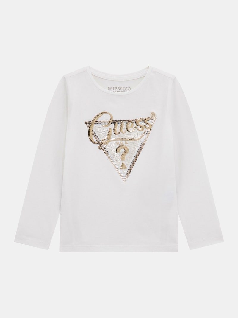• T-shirt in misto cotone.• Girocollo, maniche lunghe.• Logo triangolo con paillettes.• Vestibilità regular.