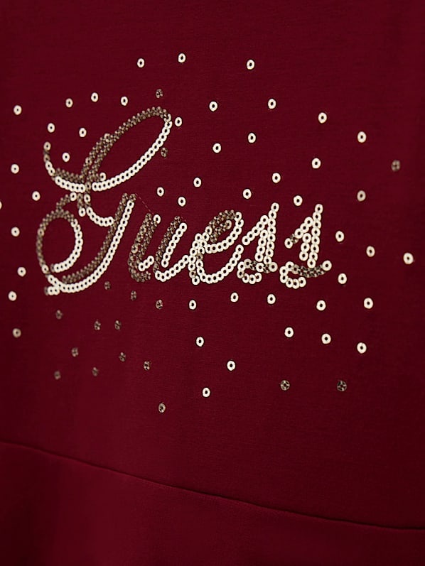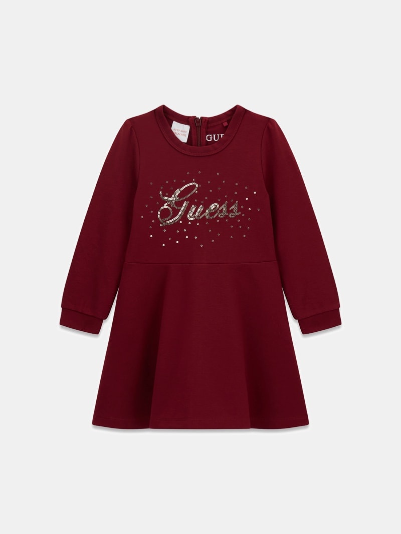• Abito midi in punto Milano.• Girocollo, maniche lunghe.• Fit and flare.• Logo frontale con paillettes.• Chiusura con cerniera lampo posteriore.