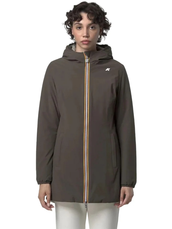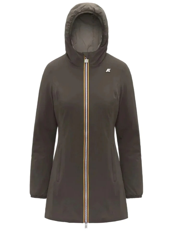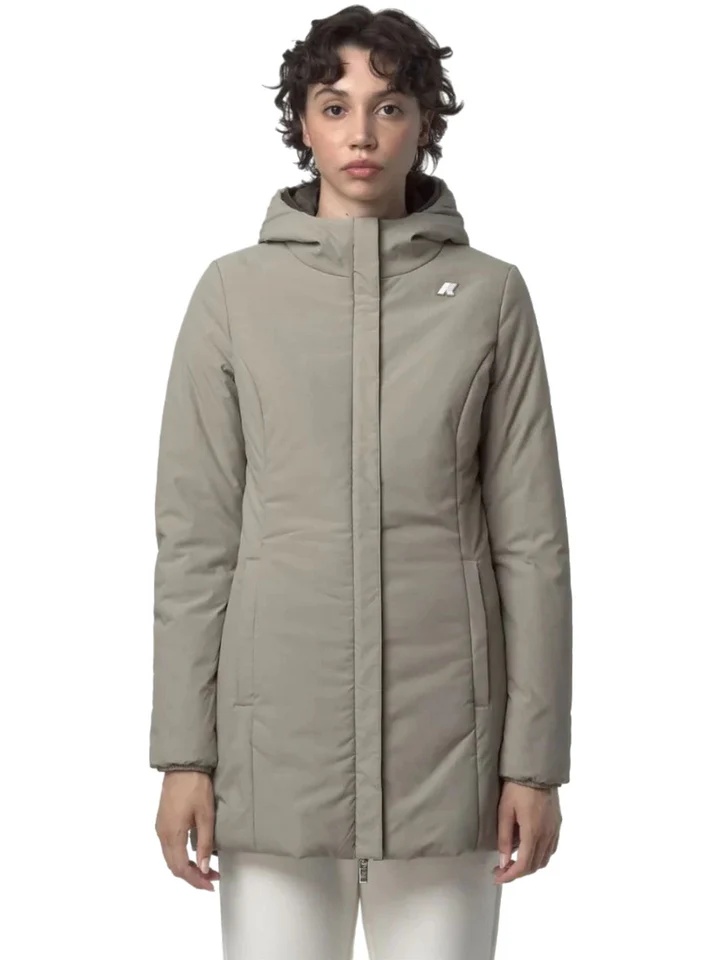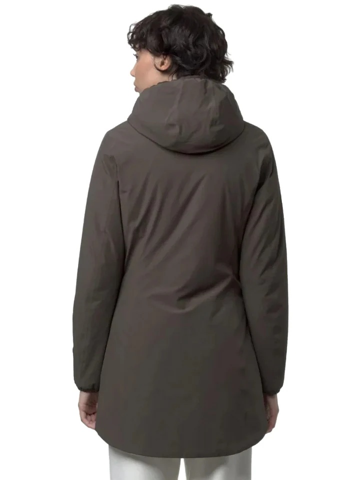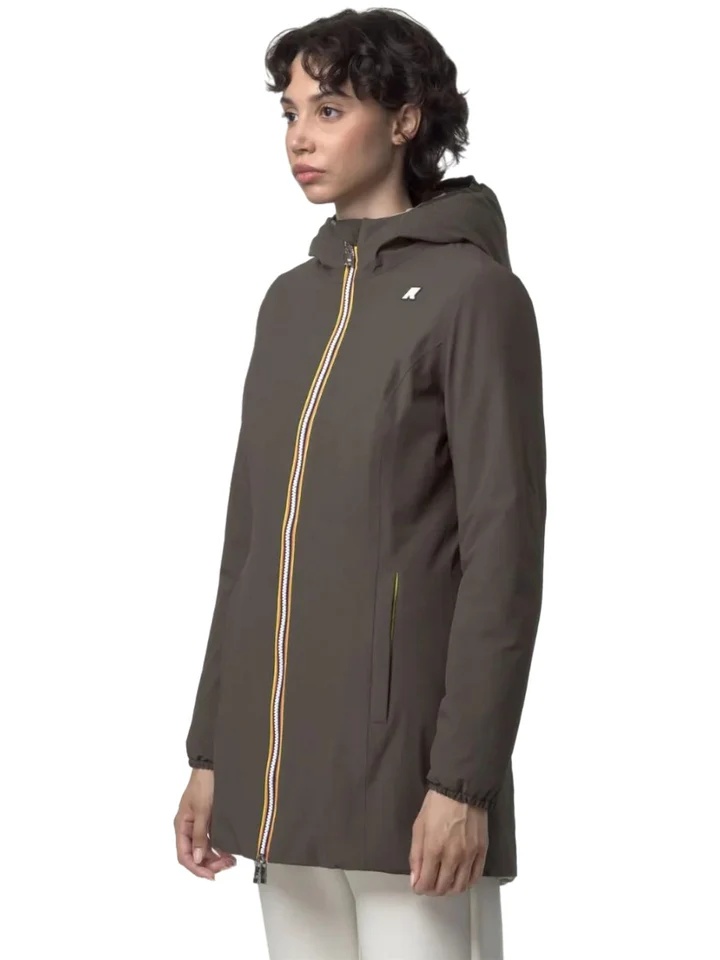 Denise è la giacca da donna con lunghezza a tre quarti che reinterpreta l'ispirazione funzionale K-Way in chiave femminile. Il modello combina un lato in poliestere elasticizzato impermeabile tinta unita e un lato in poliestere antivento dal colore a contrasto. L'imbottitura in ovatta offre un grado di calore medio, ideale per la mezza stagione, mentre le cuciture termonastrate isolano dal freddo e offrono maggiore comfort durante l'attività outdoor.