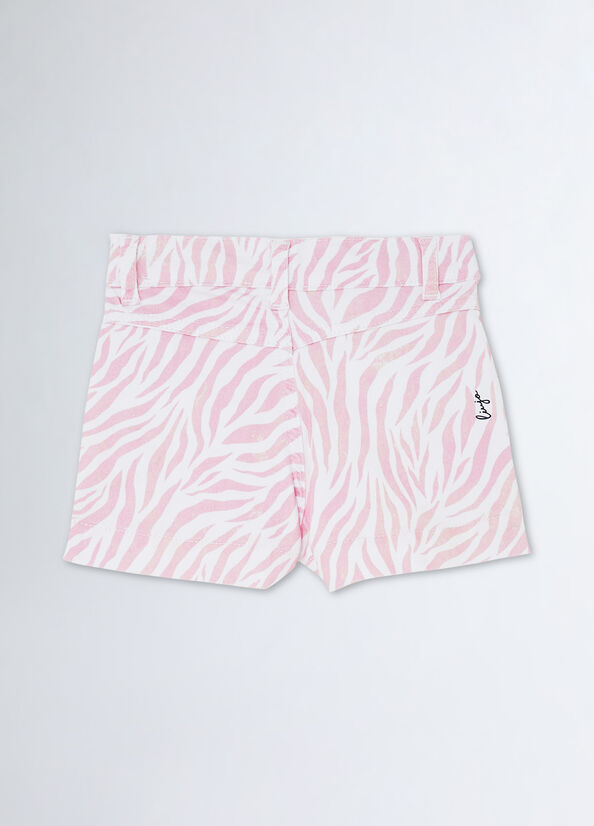 Short in gabardina di cotone stretchStampa zebrata all overTasche sui fianchiRouchesChiusura con bottone e zip nascosta