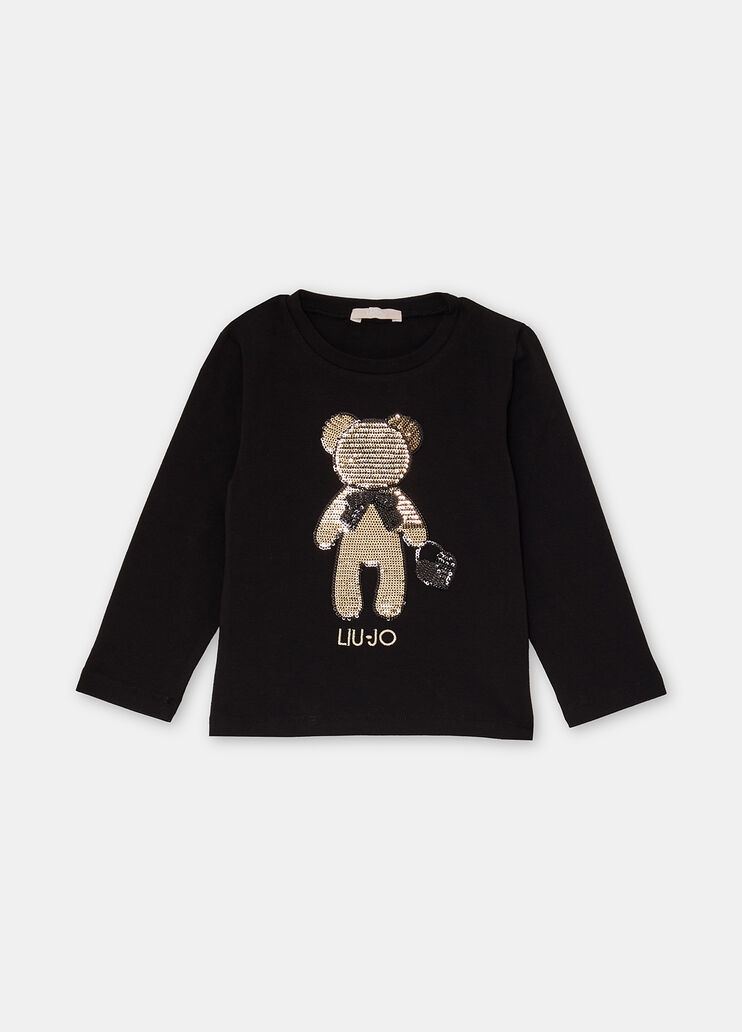 T-shirt in jersey di cotone stretchMotivo grafico con logo e paillettesTaglio girocolloManiche lunghe