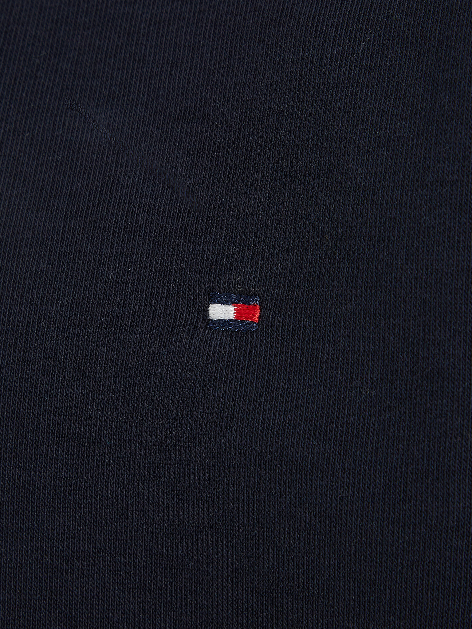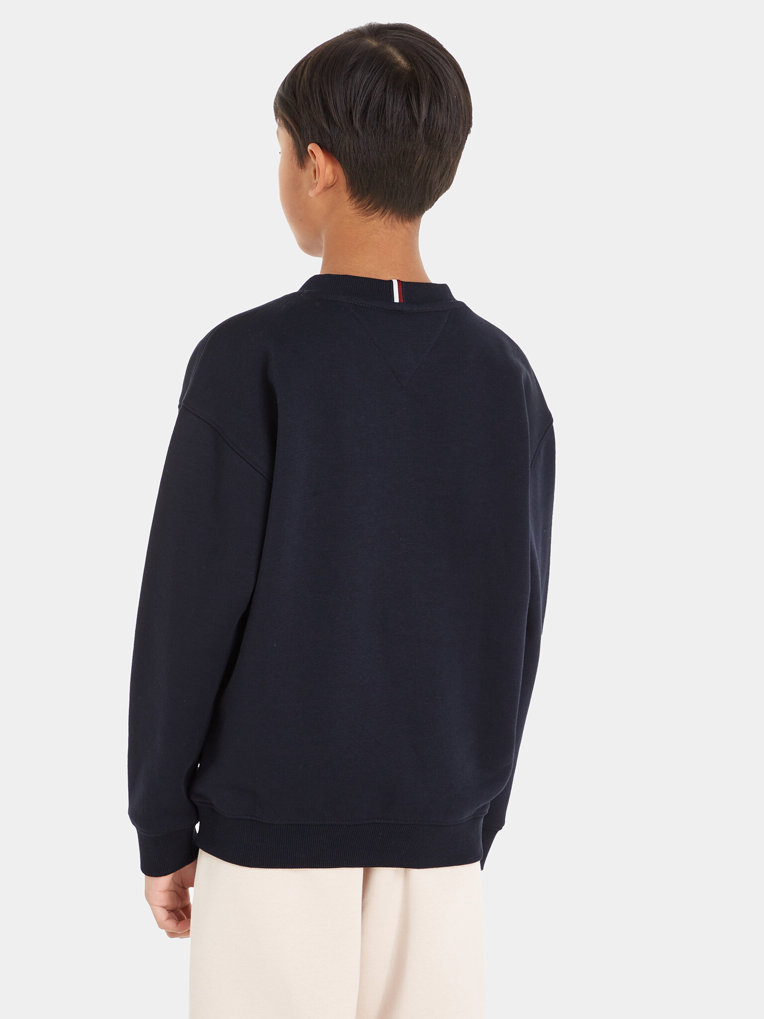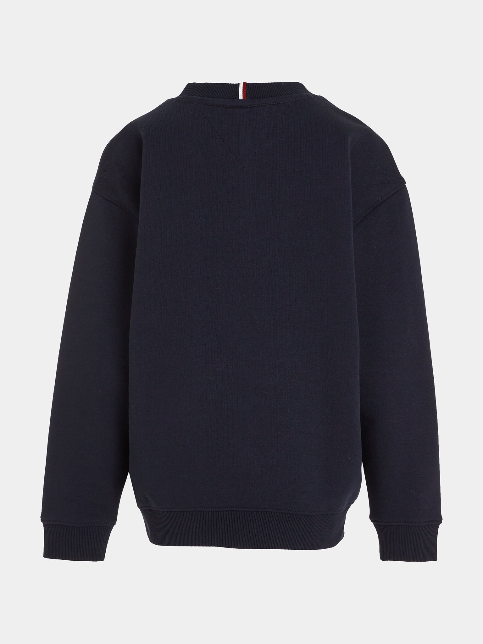 Felpa Tommy Hilfiger blu con collo tondo, maniche lunghe e logo ricamato.
