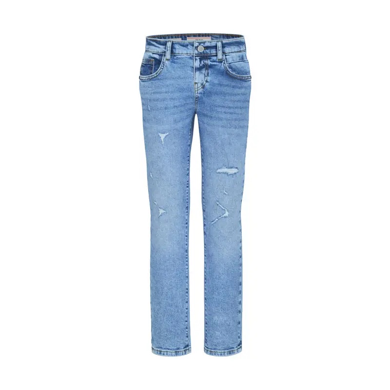 Il jeans slim comodo per bambini del marchio Guess è un must-have della moda junior. Progettato per offrire sia stile che comfort, questo capo combina eleganza e praticità, perfetto per ragazze e ragazzi alla ricerca di modernità