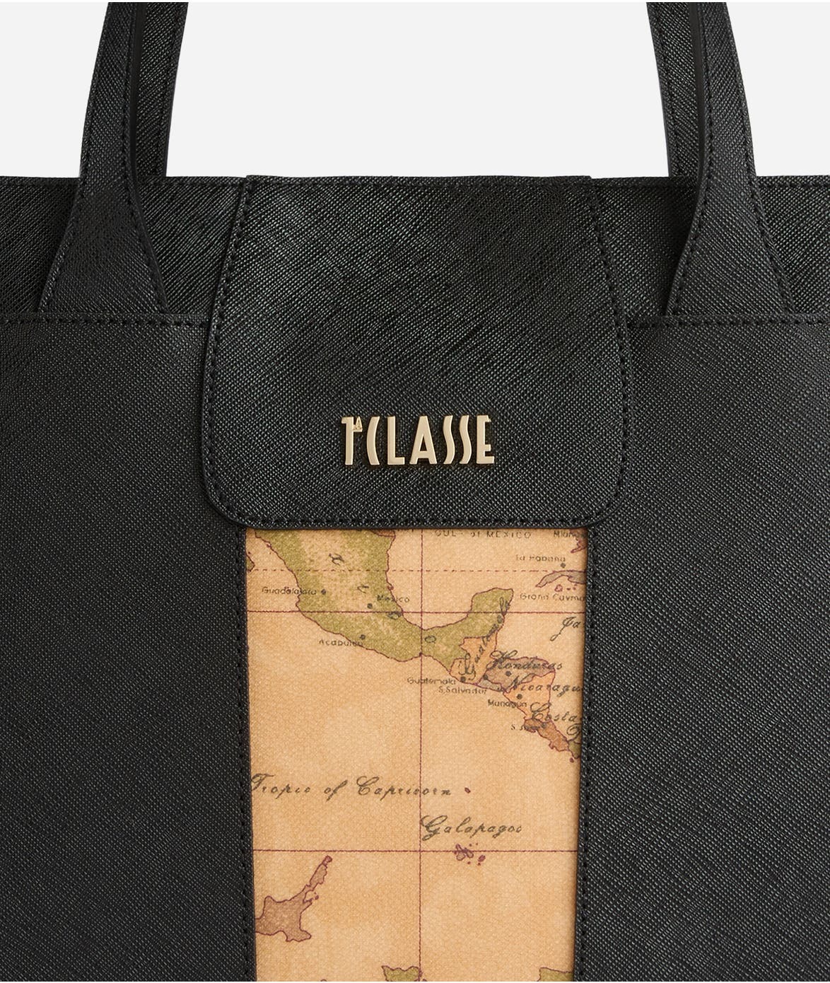 Borsa shopping grande in tessuto goffrato stampa saffiano