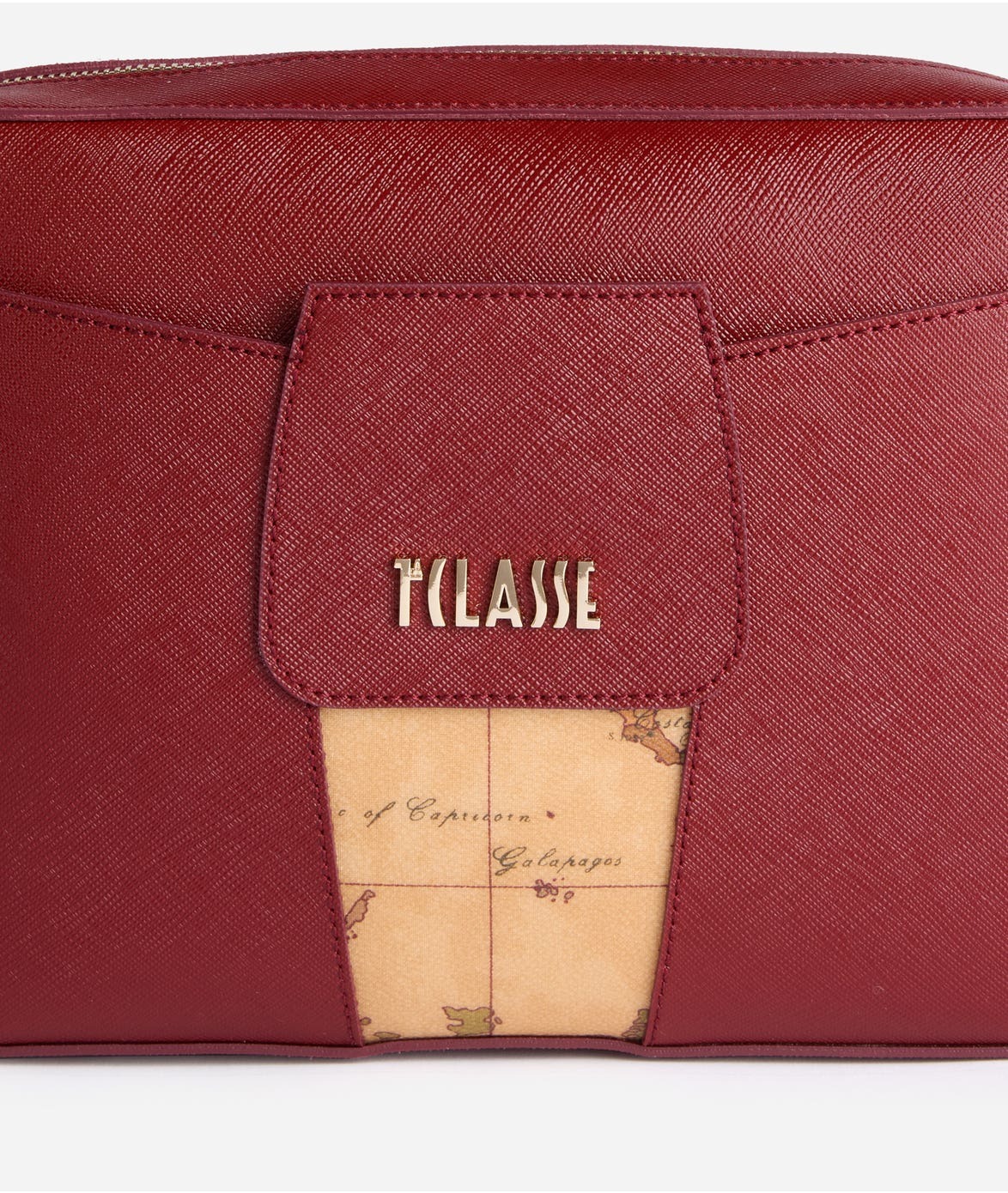 Tracolla reporter in tessuto goffrato stampa saffiano