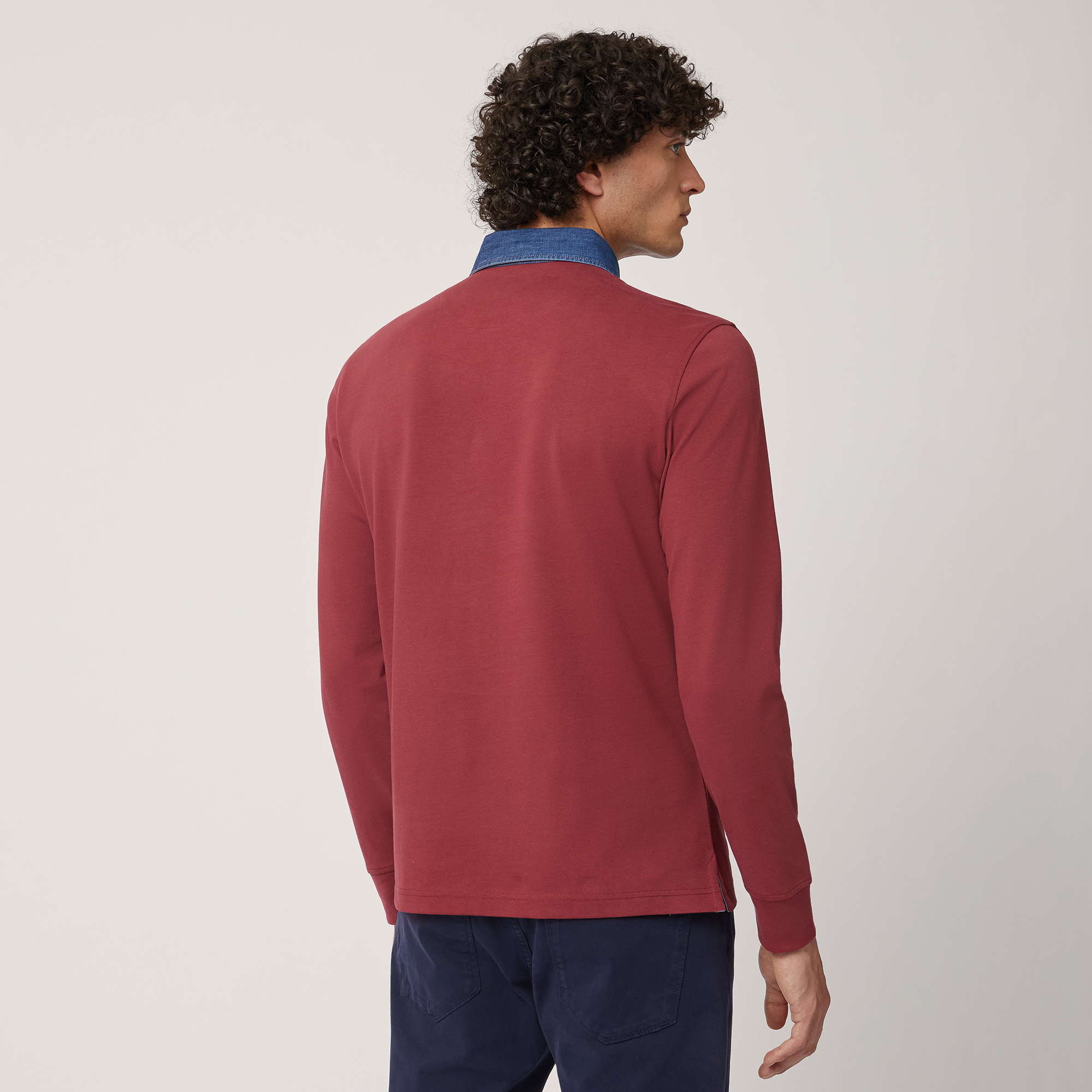 Per chi non vuole rinunciare a questo capo essenziale neppure durante la stagione autunno-inverno, Harmont & Blaine presenta la polo Vietri da uomo in 100% cotone in versione a maniche lunghe. Il capo presenta il caratteristico collo in stile camicia, in questo caso realizzato in denim, per un effetto originale e d'impatto. Il modello è proposto in una vestibilità regular, leggermente più ampia, ed è impreziosita dal ricamo del bassotto Blaine realizzato sul petto a contrasto.