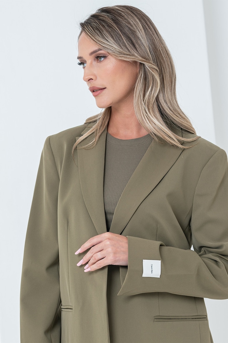 Blazer monopetto dal taglio oversize Collo con revers classici Chiusura frontale a un bottone Spalle imbottite Tasche frontali a filetto Etichetta con logo applicata sul polsino