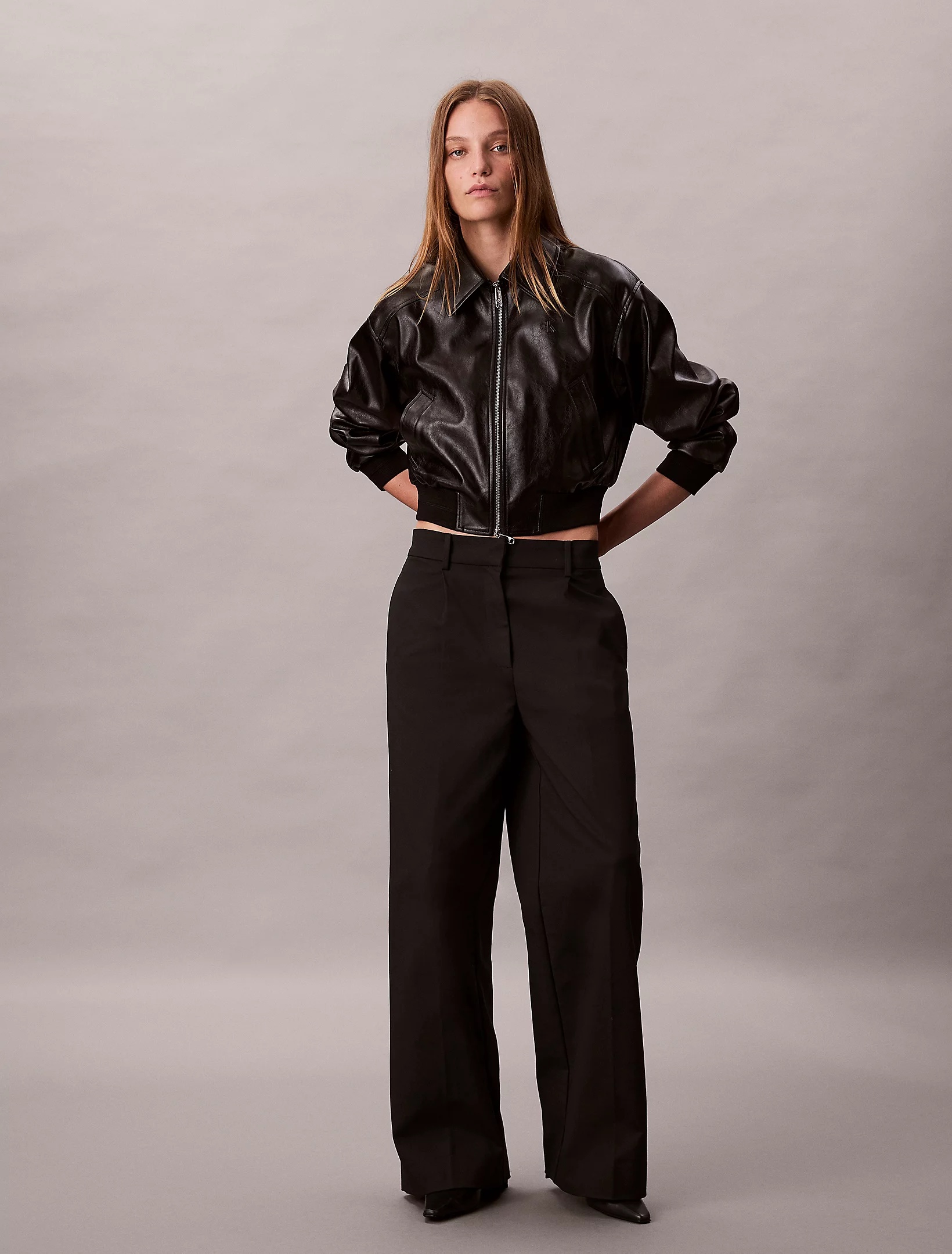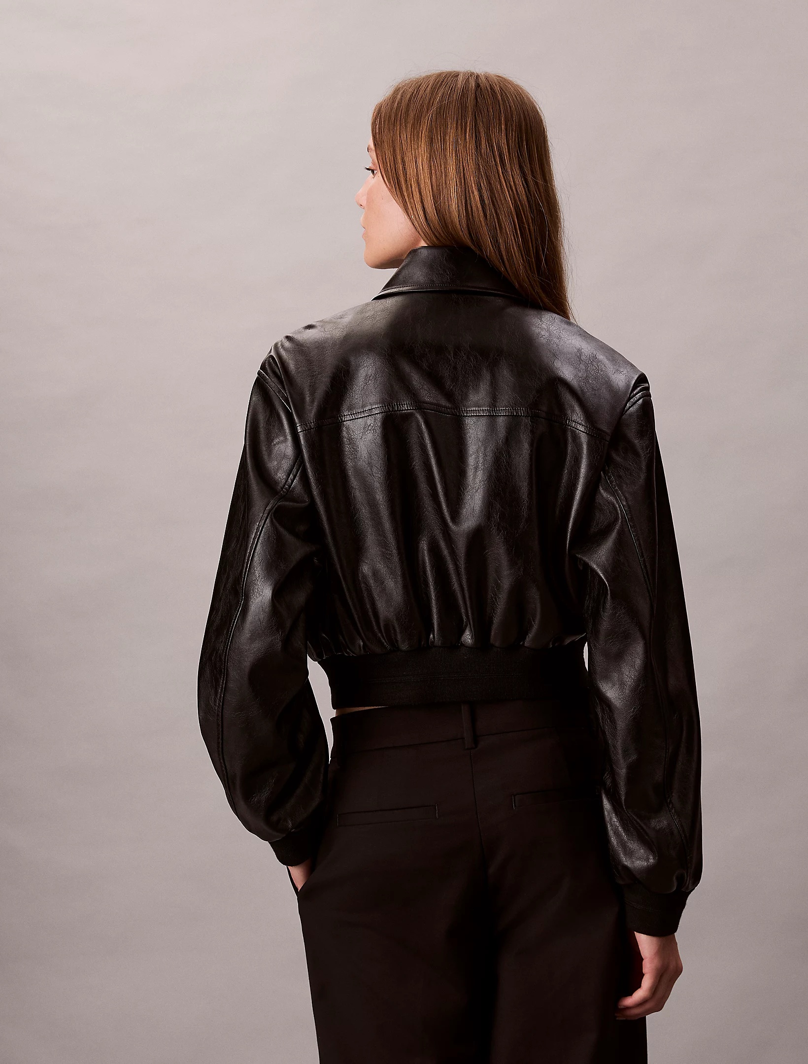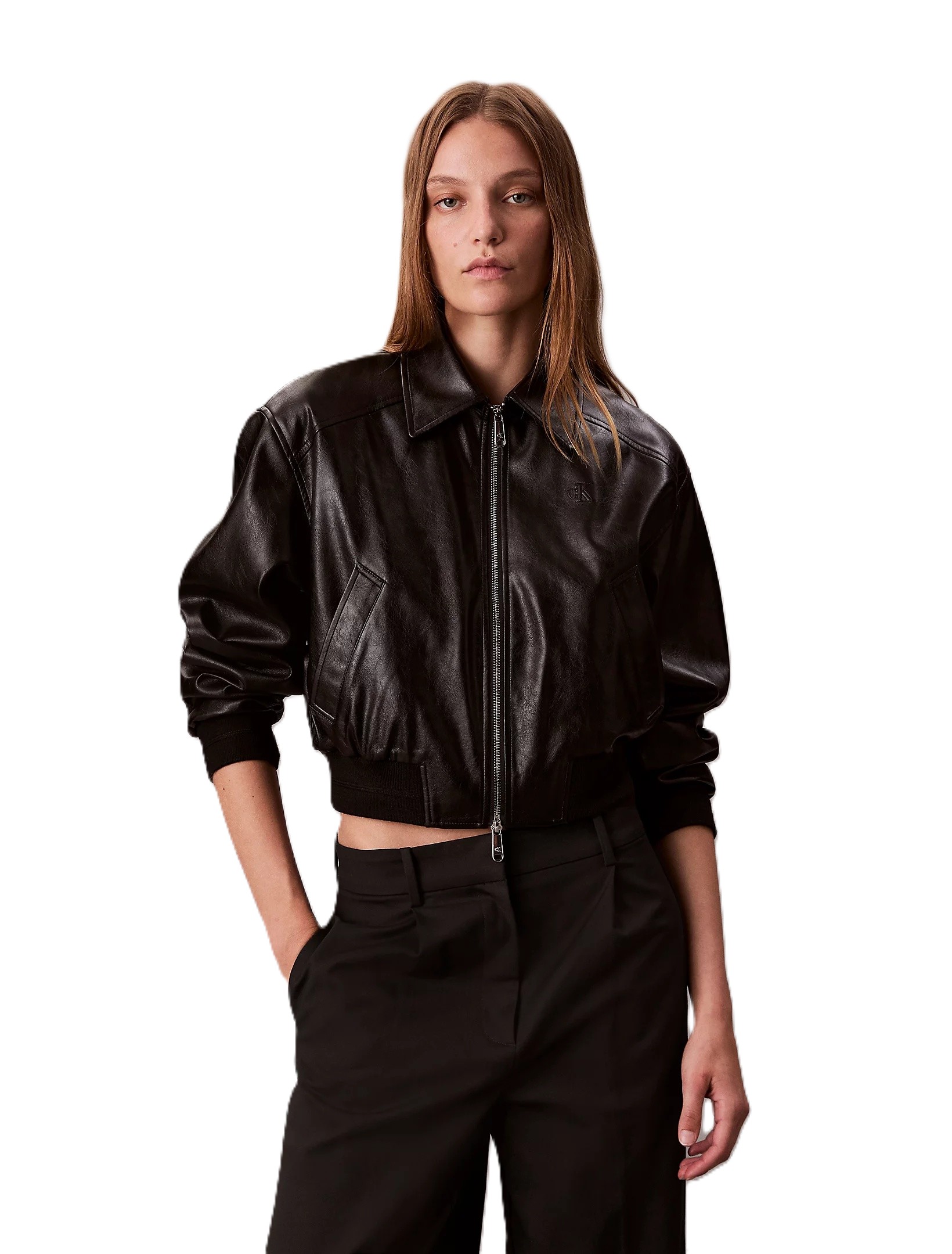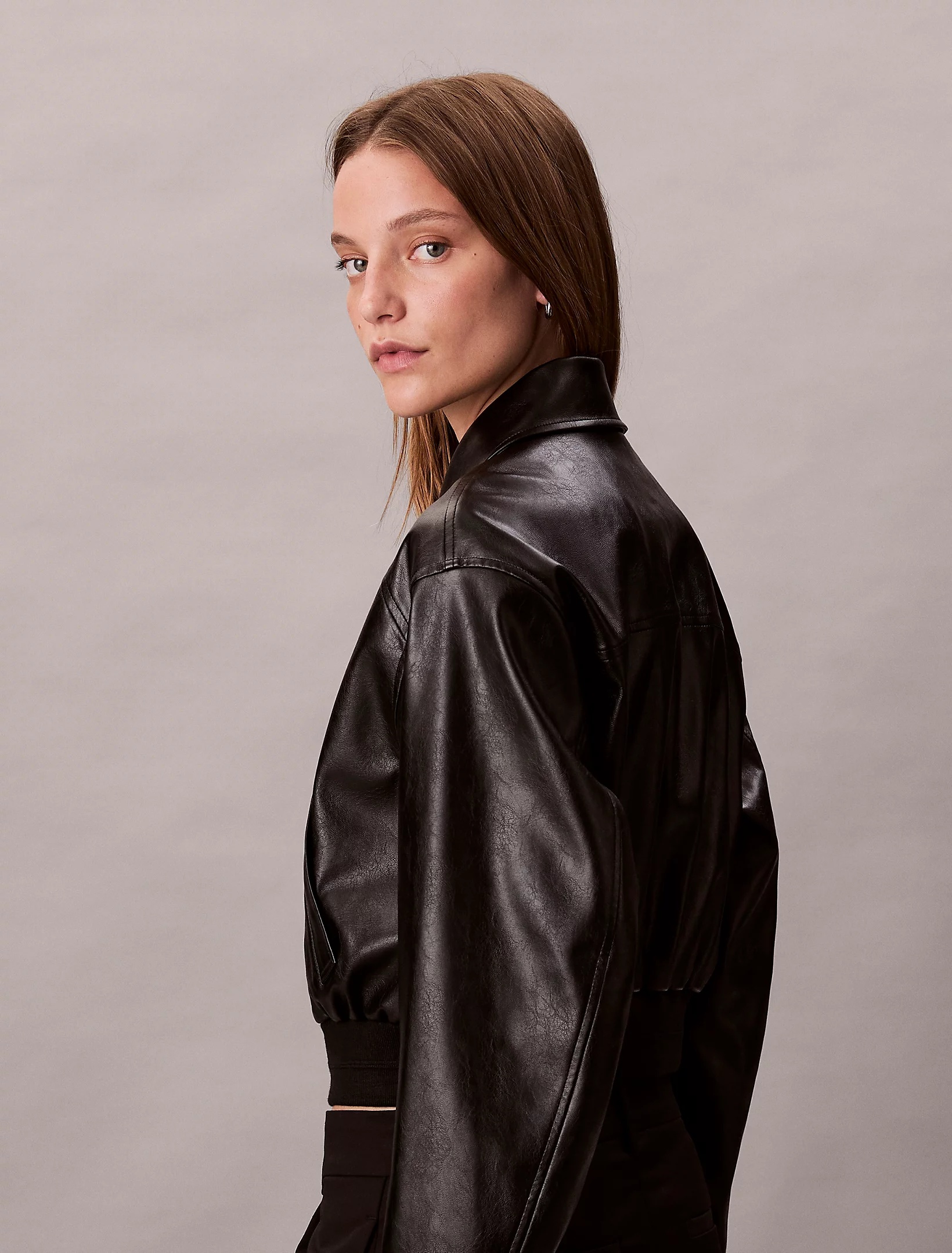 Una rivisitazione del classico bomber, con una vestibilità aggiornata in elegante ecopelle.