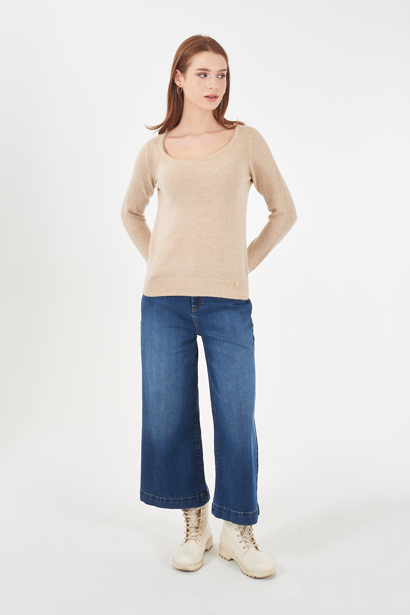 * Maglia a maniche lunghe con scollo ampio e rotondo
