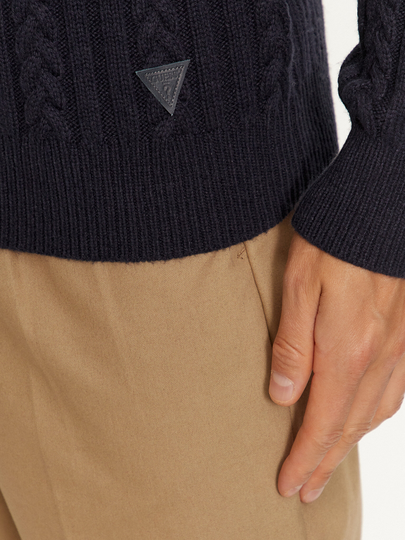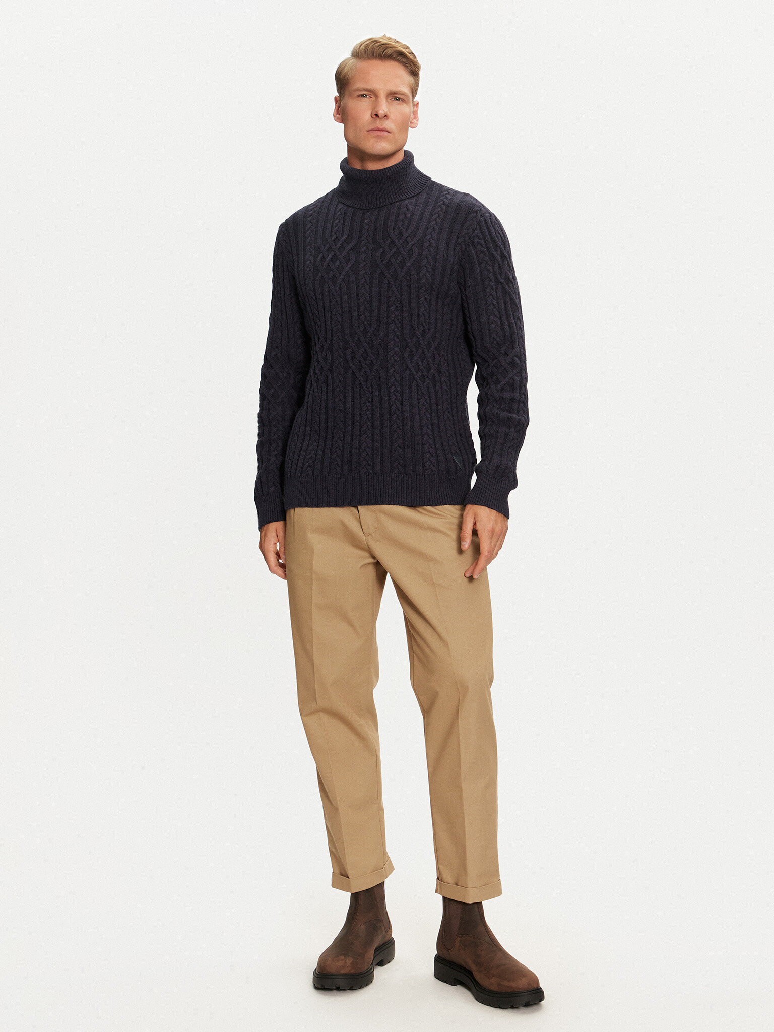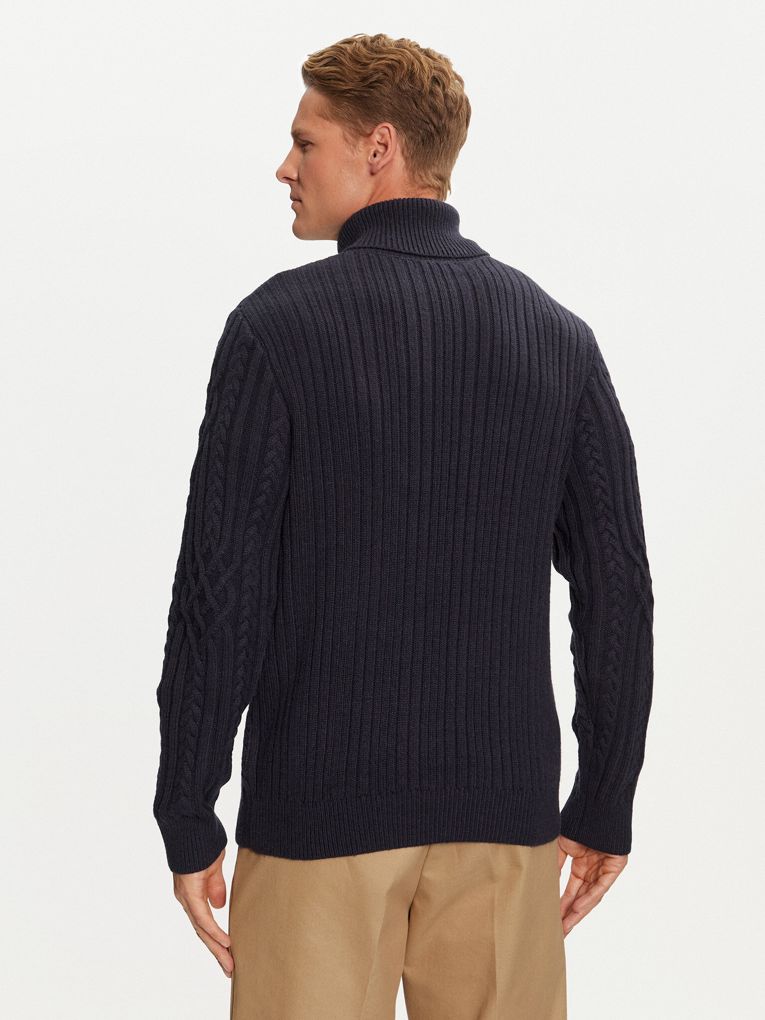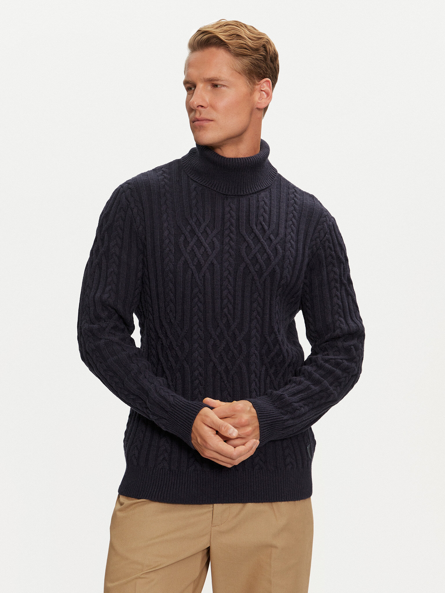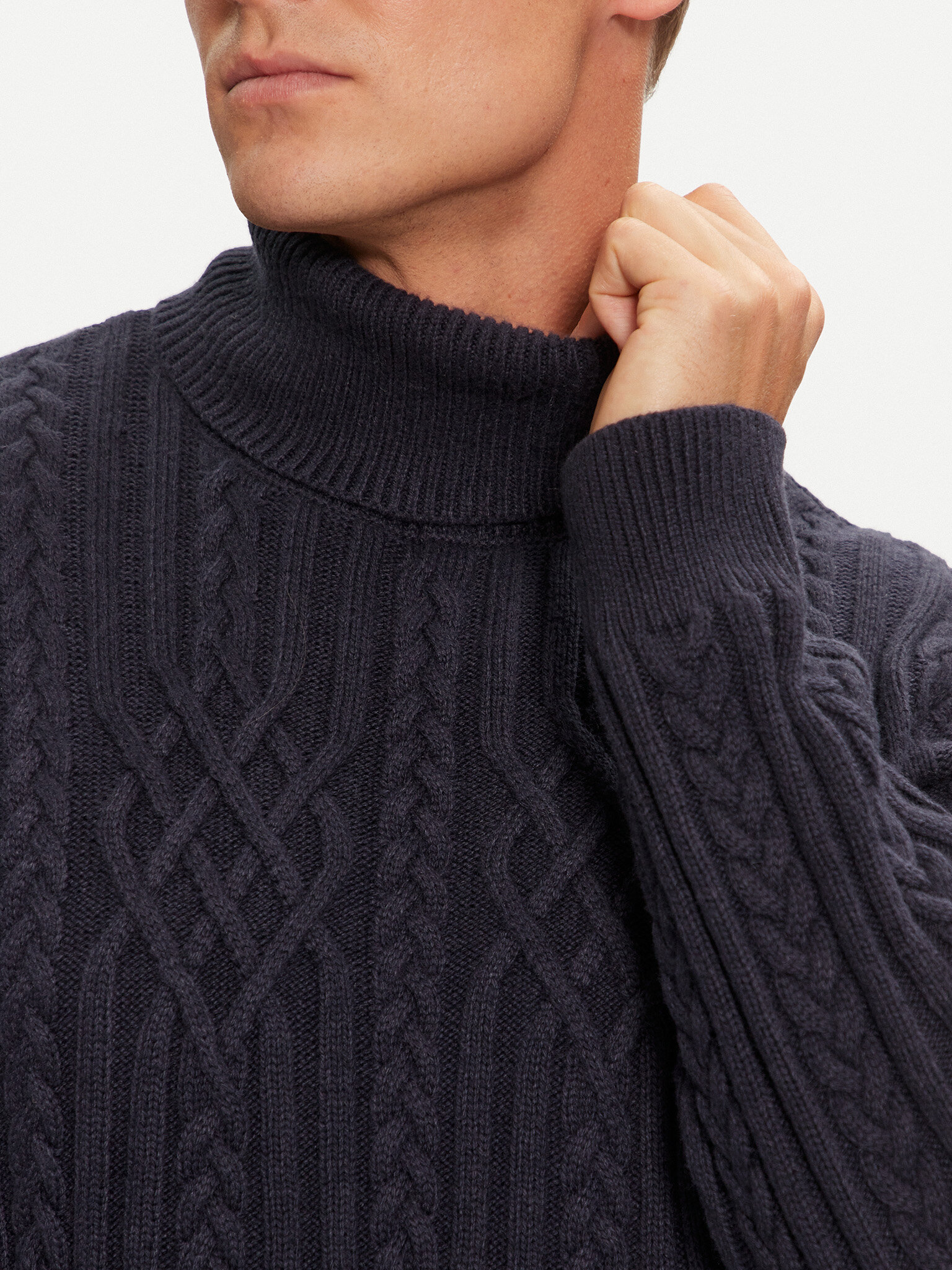 - Maglione a collo alto con lavorazione a trecce