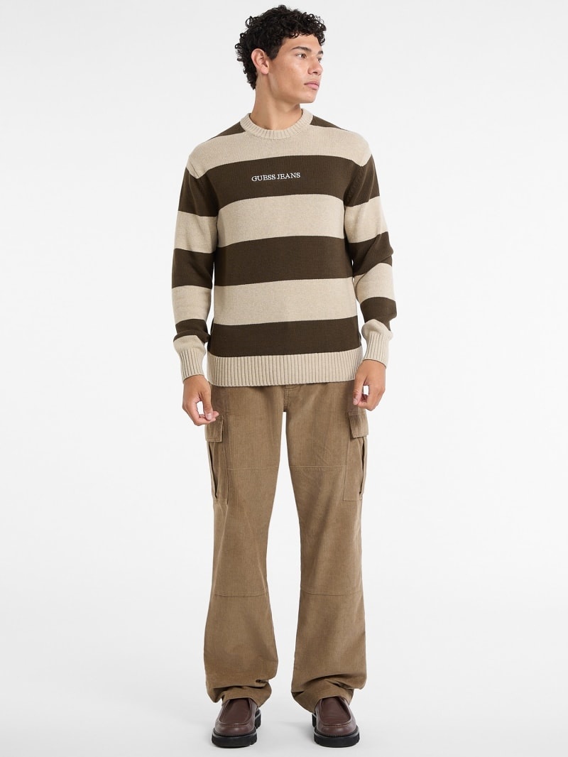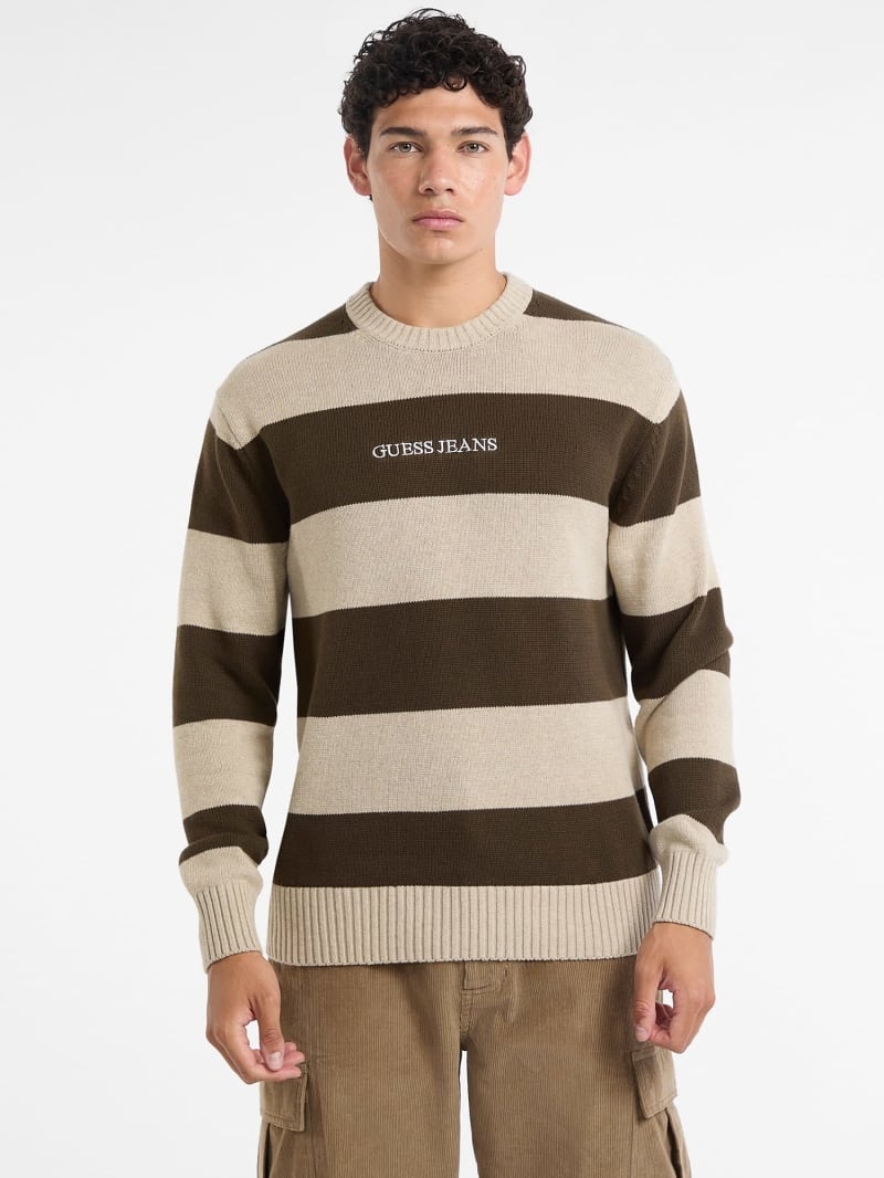 • Maglione pullover in cotone lavorato a maglia a righe.• Logo ricamato.• Girocollo.• Maniche lunghe.• Vestibilità e lunghezza regolari.