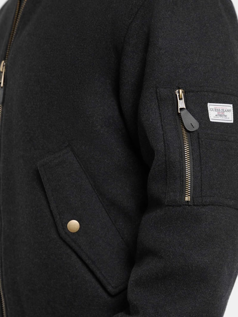 • Giacca bomber in misto lana.• Maniche lunghe.• Colletto a bomber.• Vestibilità regular.• Imbottita.• Tasche a patta.