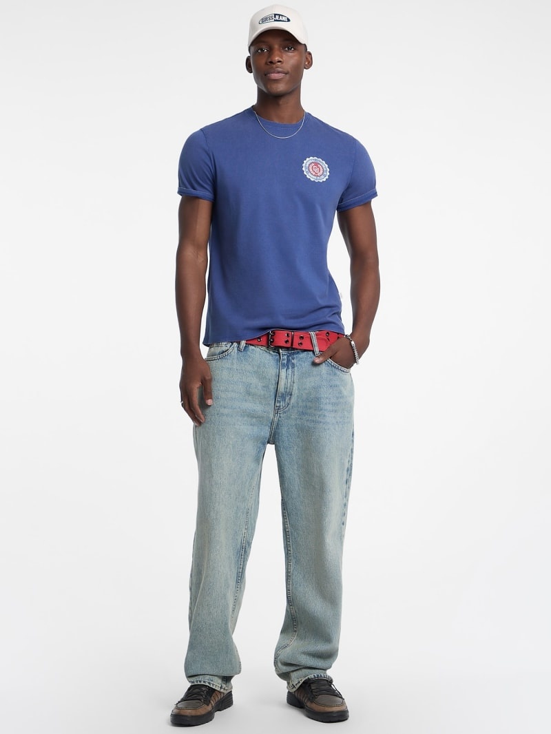 T-shirt a maniche corte.Scollo rotondo.Vestibilità regolare.Patch circolare applicata sul petto con logo GUESS e dettagli testuali.Piccola etichetta applicata sul lato sinistro.