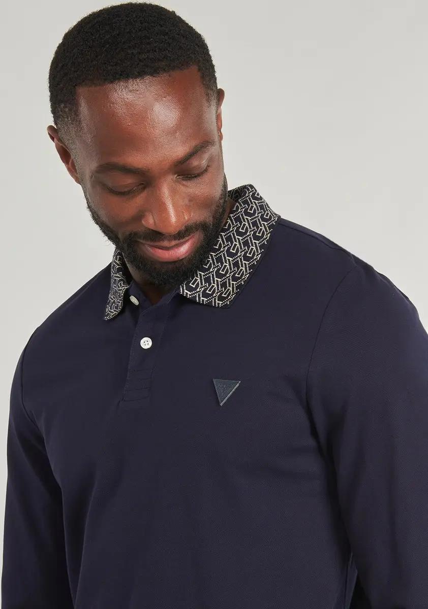 Polo a maniche lunghe. Colletto a polo con motivo grafico. Chiusura con bottoni sul davanti. Piccolo logo triangolare GUESS applicato sul petto. Vestibilità slim.