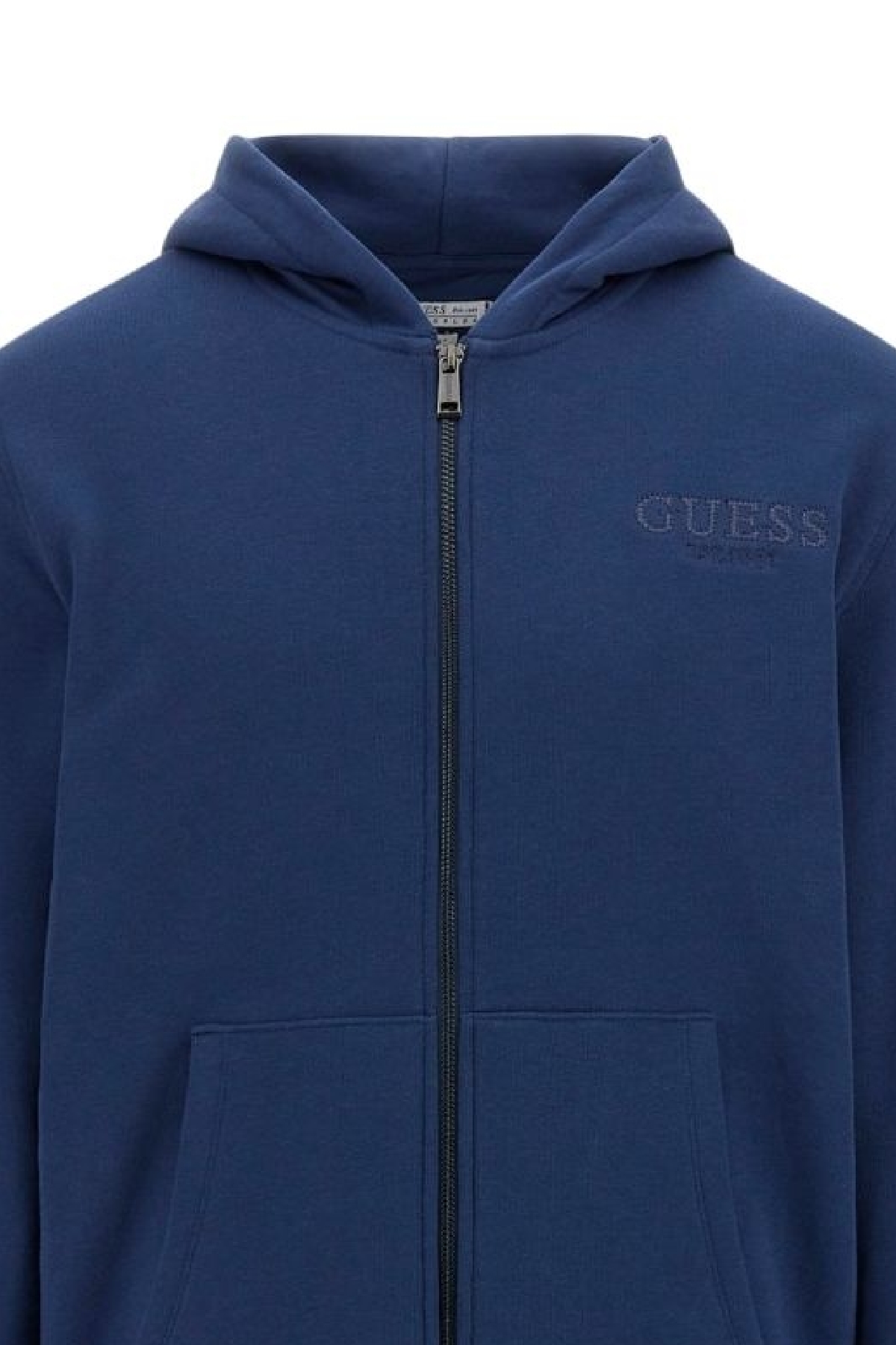 * Felpa con zip frontale.* Cappuccio.* Tasche frontali a marsupio.* Logo "GUESS" in rilievo sul petto.* Polsini e fondo con bordo a costine.* Chiusura con zip metallica.