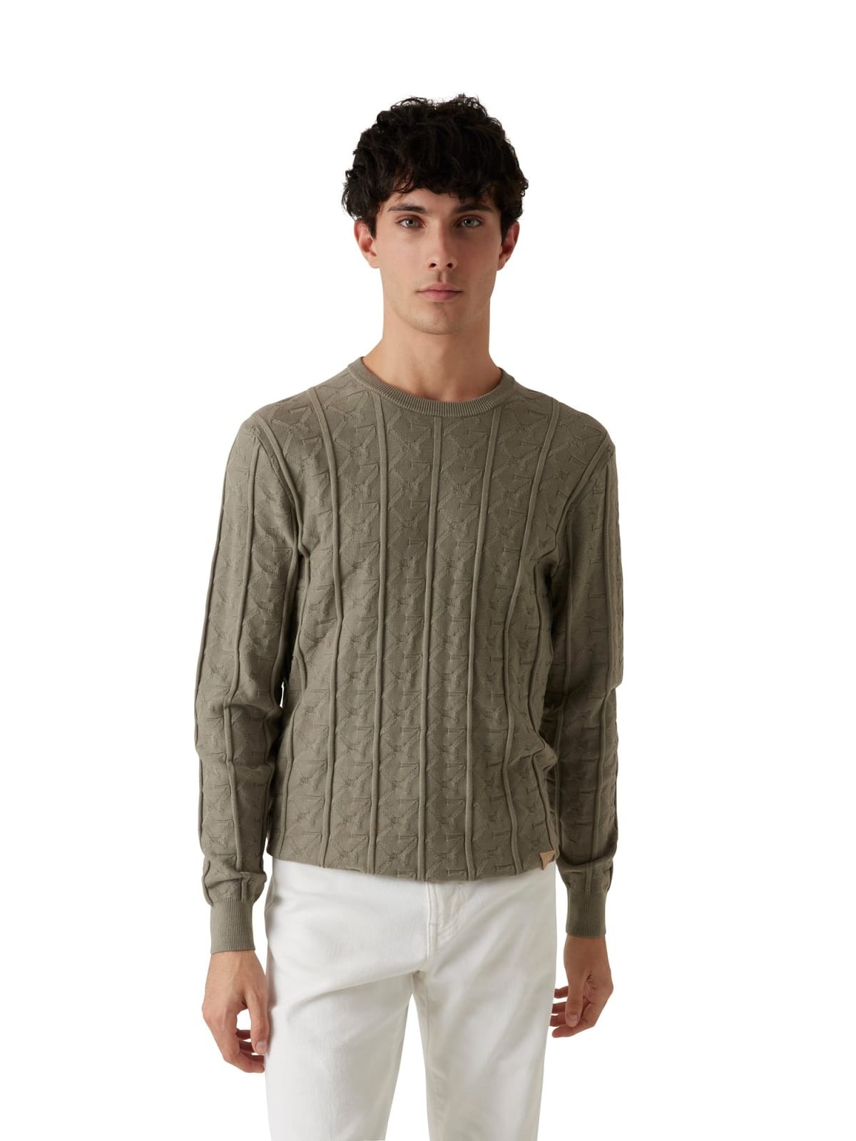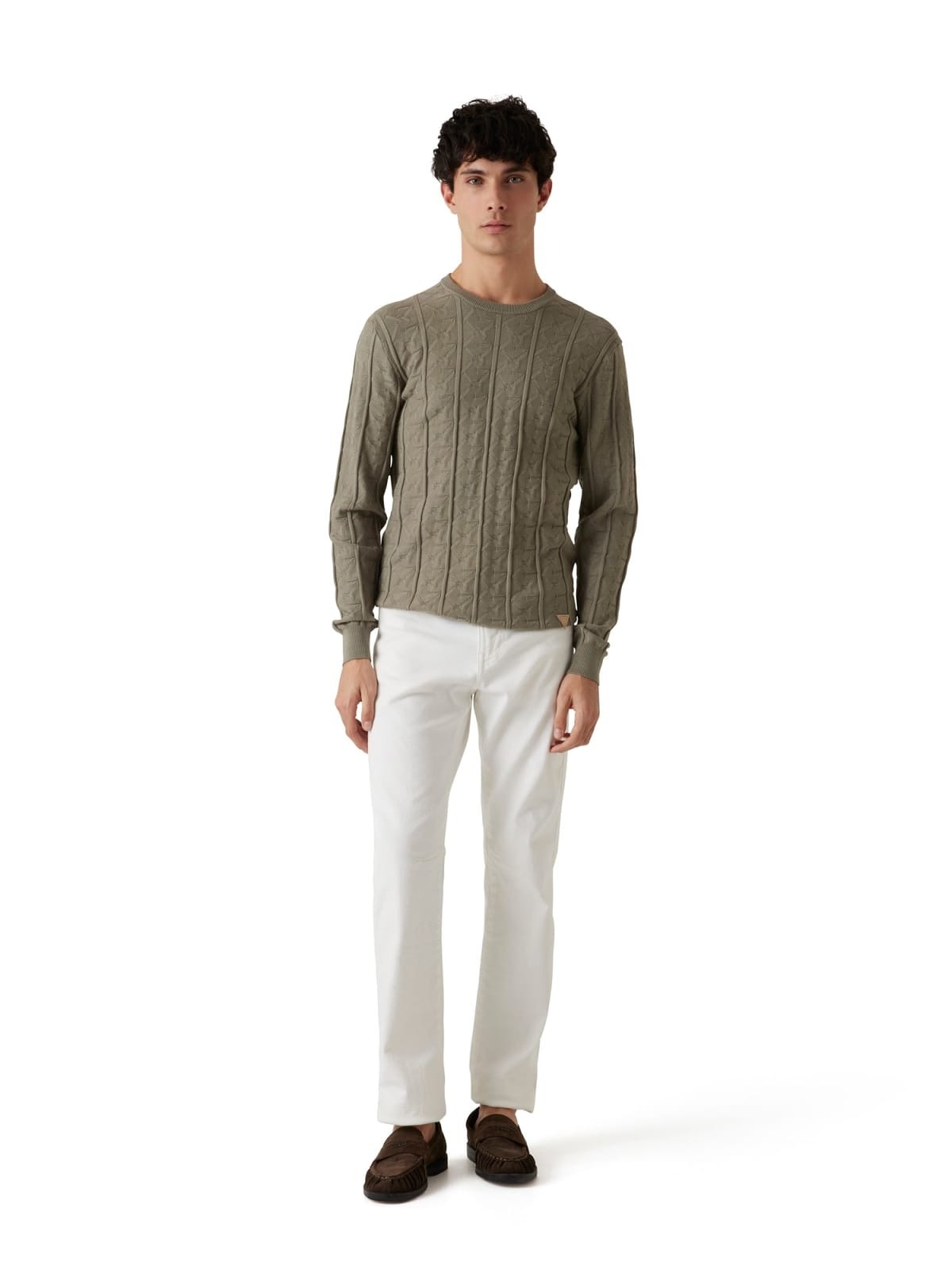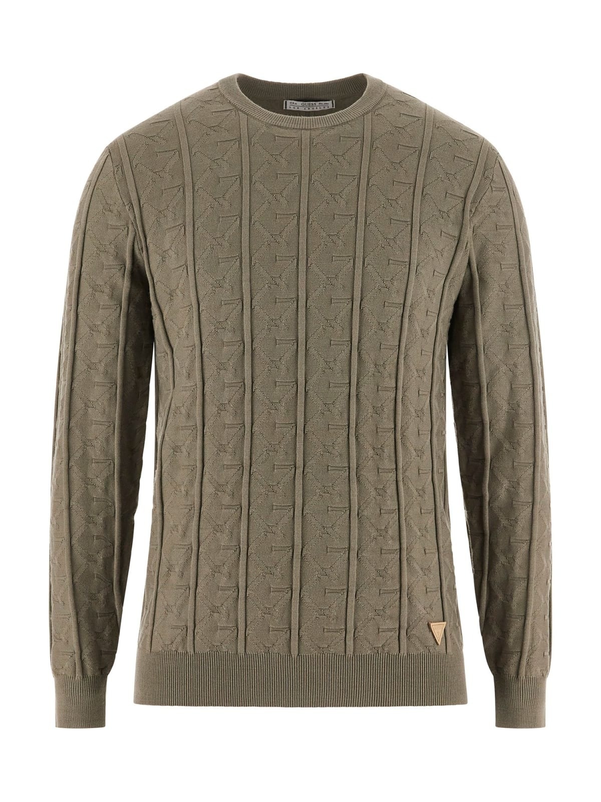 * Maglione a maniche lunghe.* Trama intrecciata sul davanti.* Girocollo.* Logo del brand presente sul lato inferiore.* Vestibilità aderente.* Maniche e fondo a costine.
