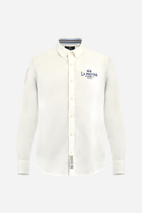 Collo button down con tessuti e nastri bicolore a contrasto all’interno