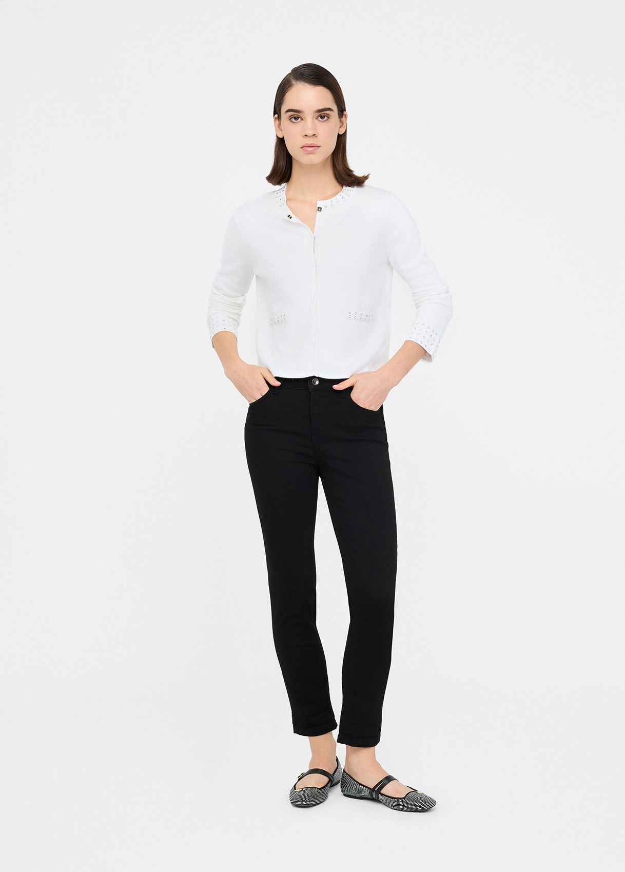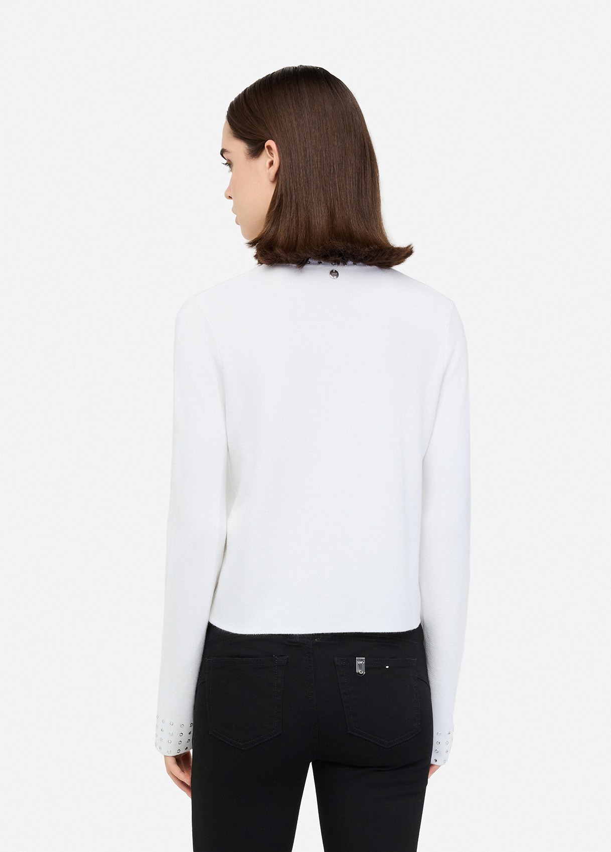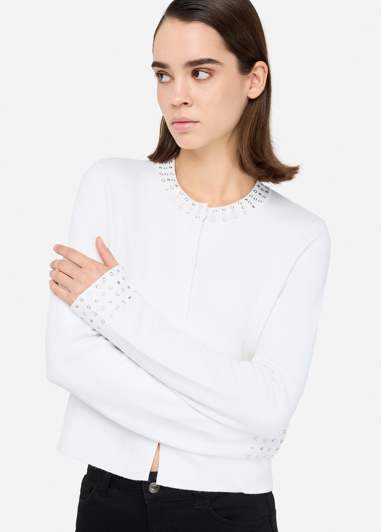 Giacca in magliaFilati in misto viscosaStrass applicatiComode tascheTasche sul davantiChiusura con bottoni a pressione nascostiProdotto "Liu Jo Better"