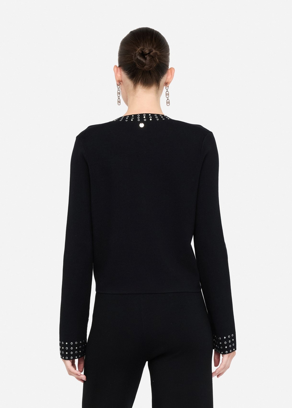 Giacca in magliaFilati in misto viscosaStrass applicatiComode tascheTasche sul davantiChiusura con bottoni a pressione nascostiProdotto "Liu Jo Better"