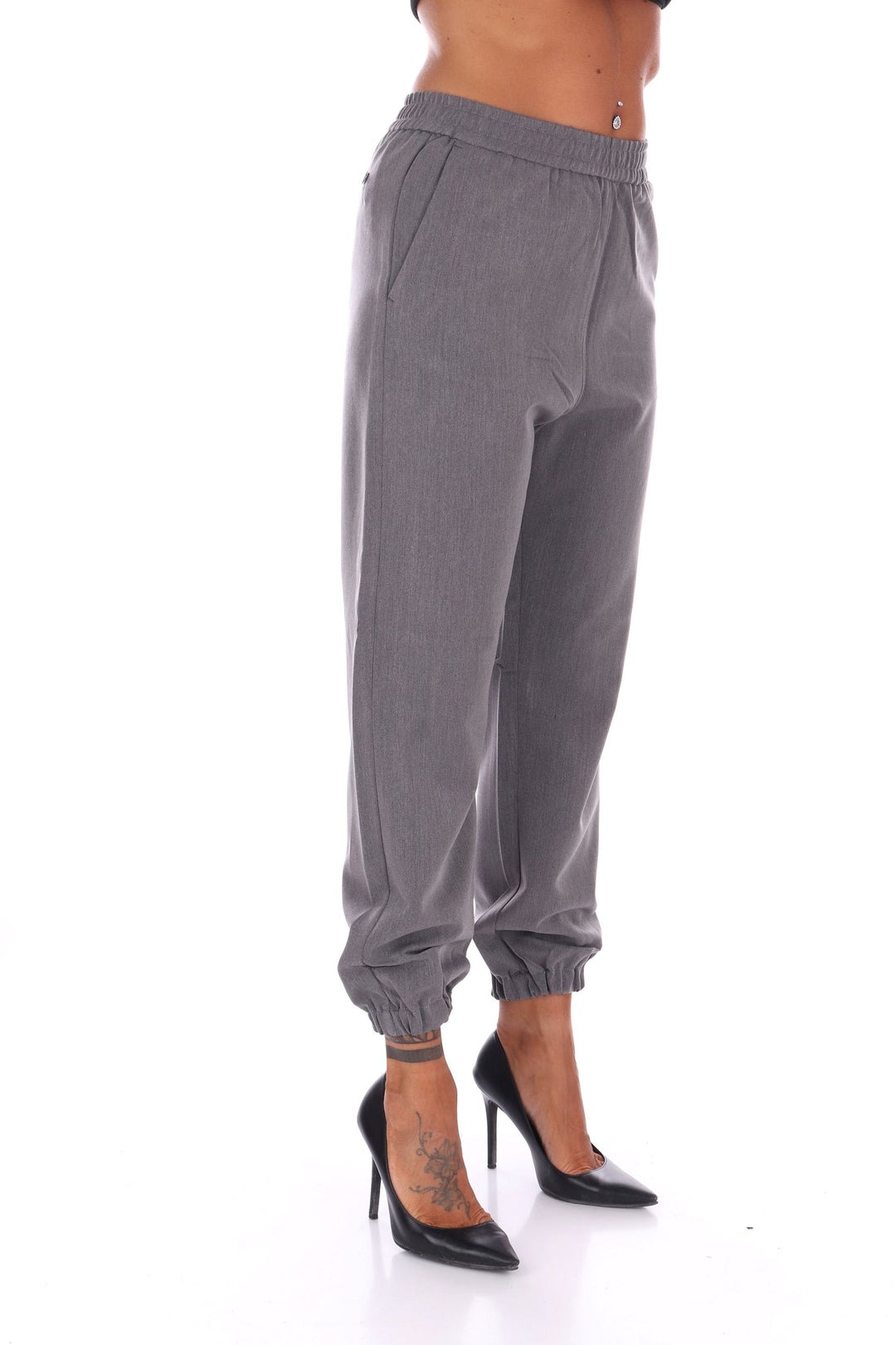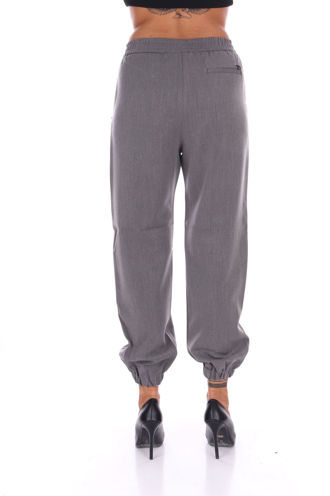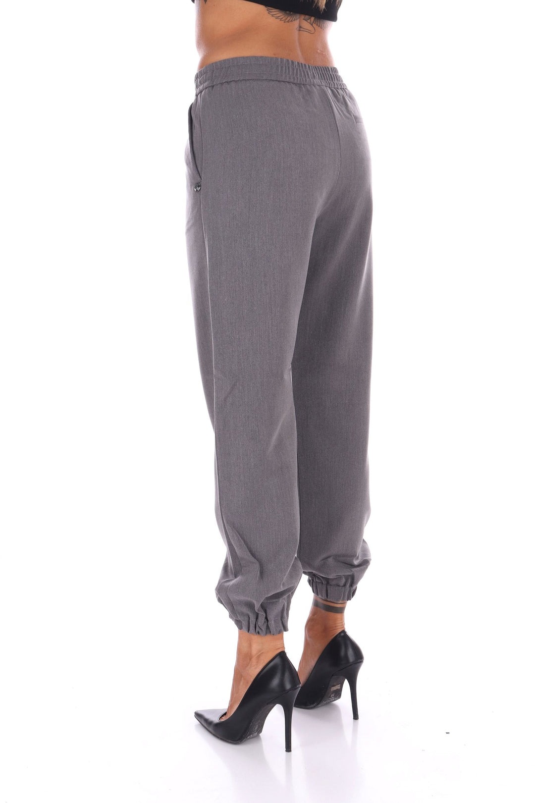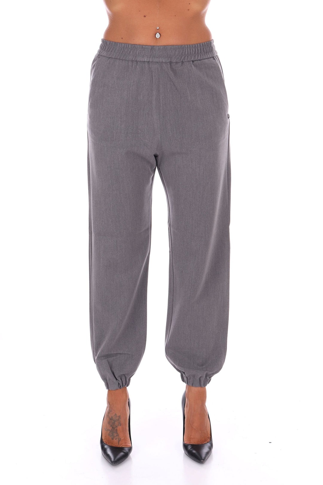 Pantalone jogging in misto viscosa con vita regolare elastica e comodo elastichino sul fondo per un fit giocoso e confortevole. Le tasche a filo laterali donano un tocco di semplicità elegante, mentre la vestibilità fluida valorizza la figura con naturalezza. Perfetto per chi vuole un capo versatile e leggero, senza rinunciare a un pizzico di allegria!