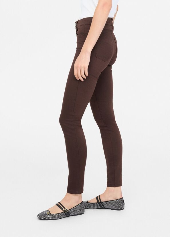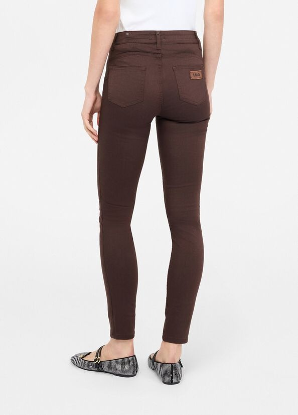 Pantaloni bottom up in cotone stretchVita altaPietre gioiello applicateModello cinque tascheGamba skinnyChiusura con zip e bottone