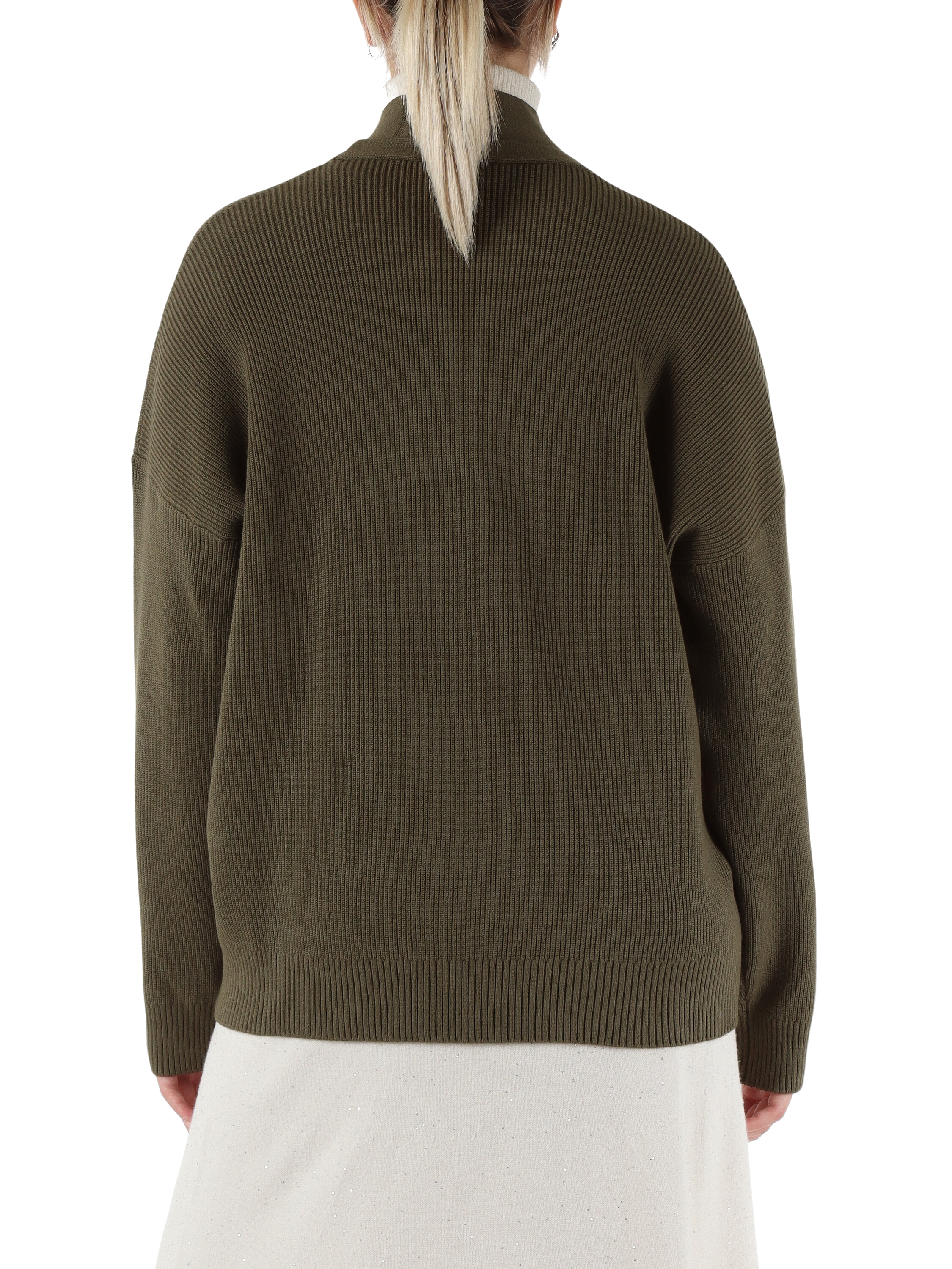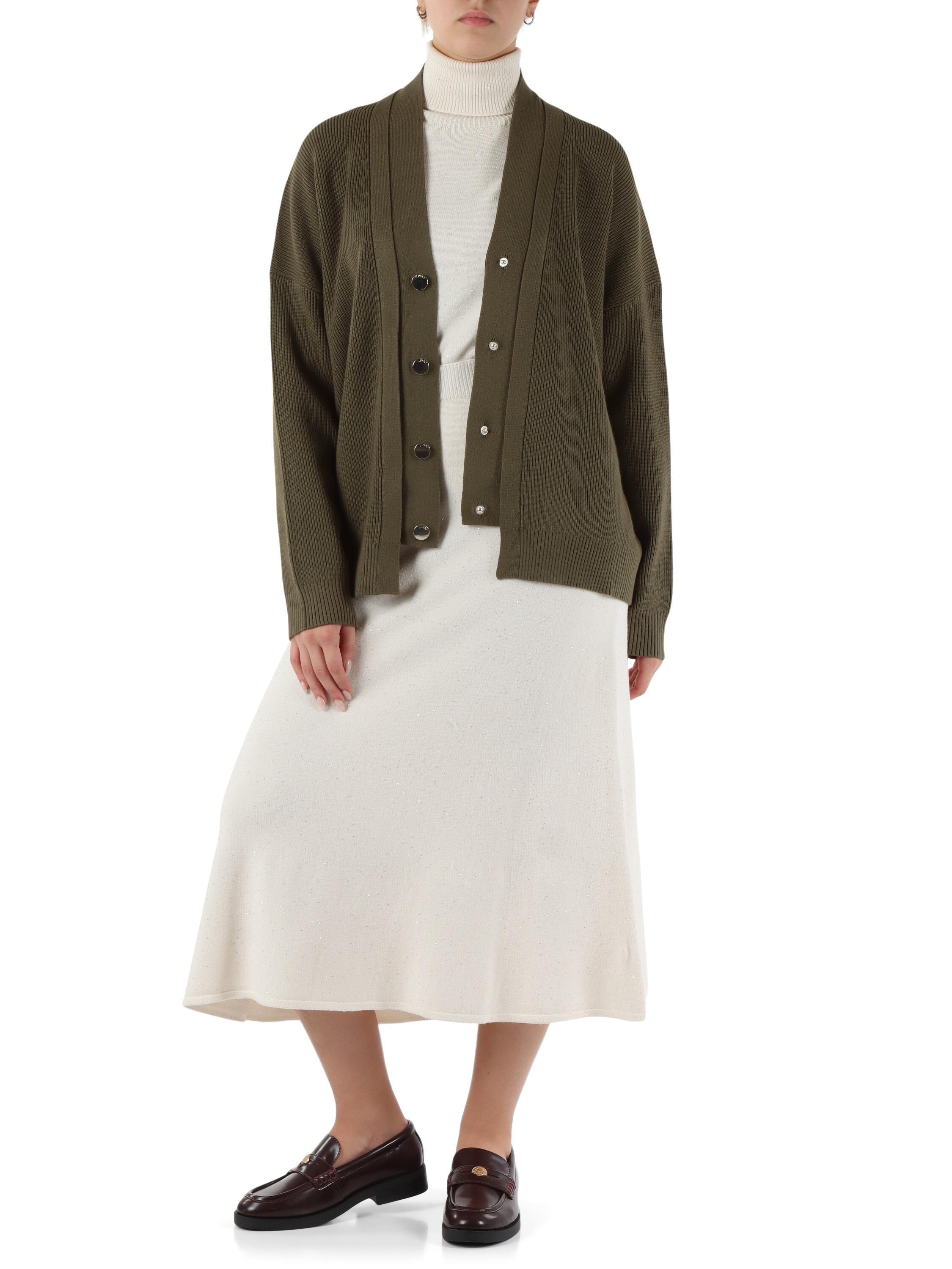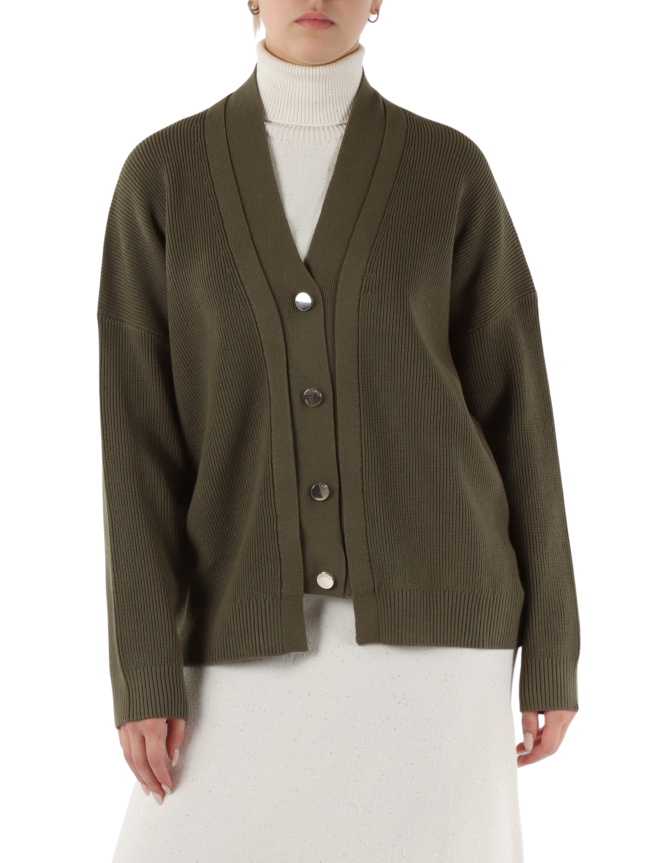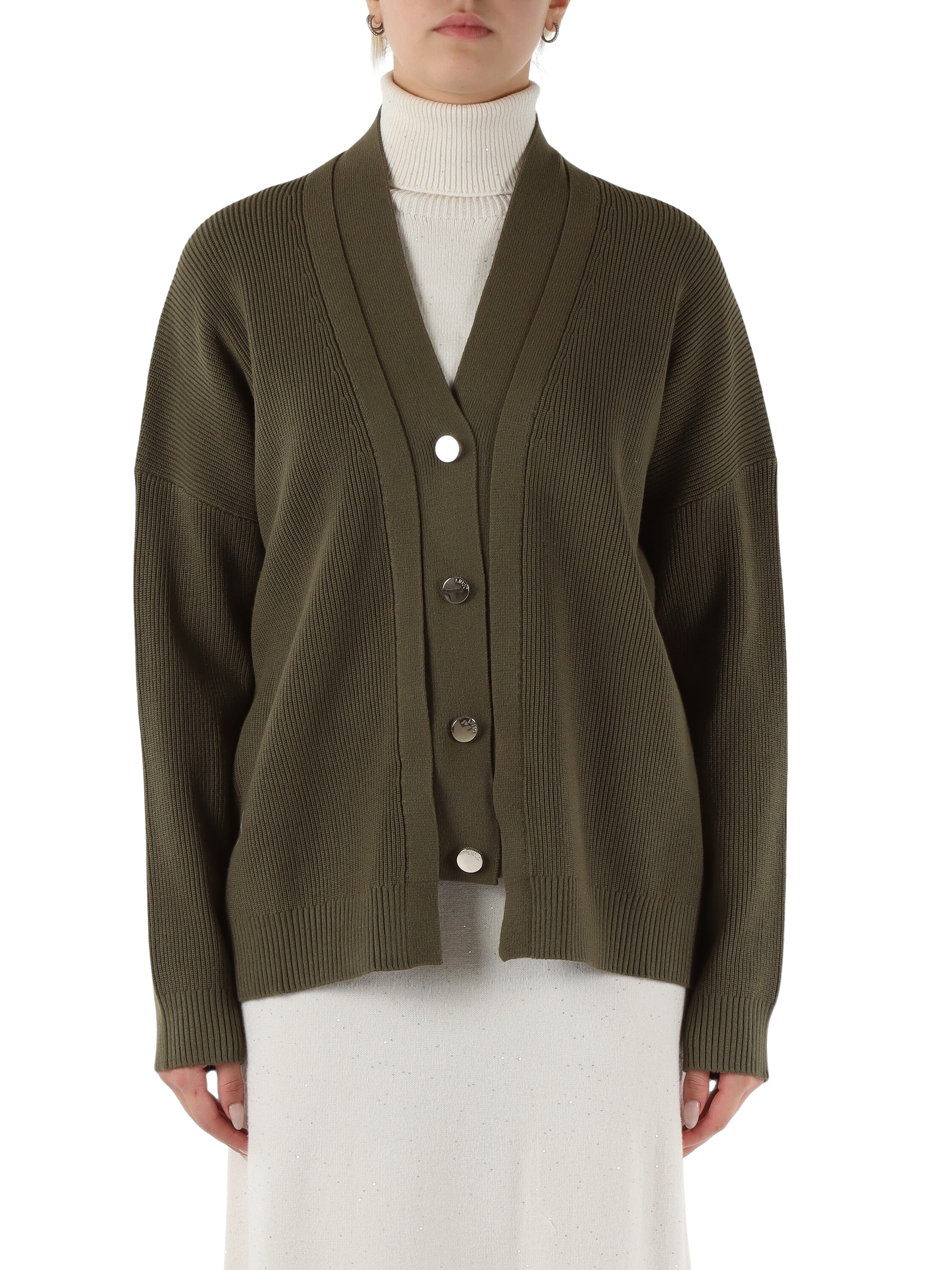 Cardigan con filati in misto viscosaScollo a VCostruzione asimmetricaChiusura con bottoni a pressione
