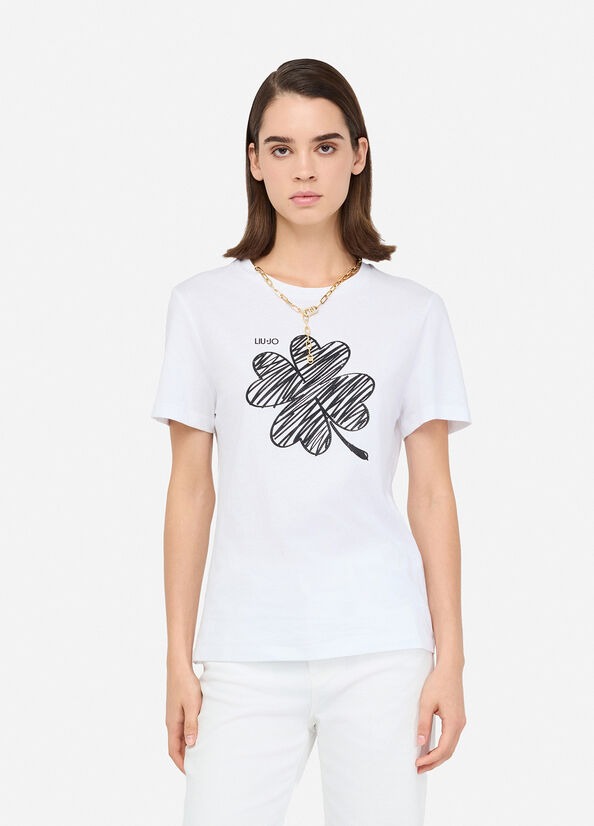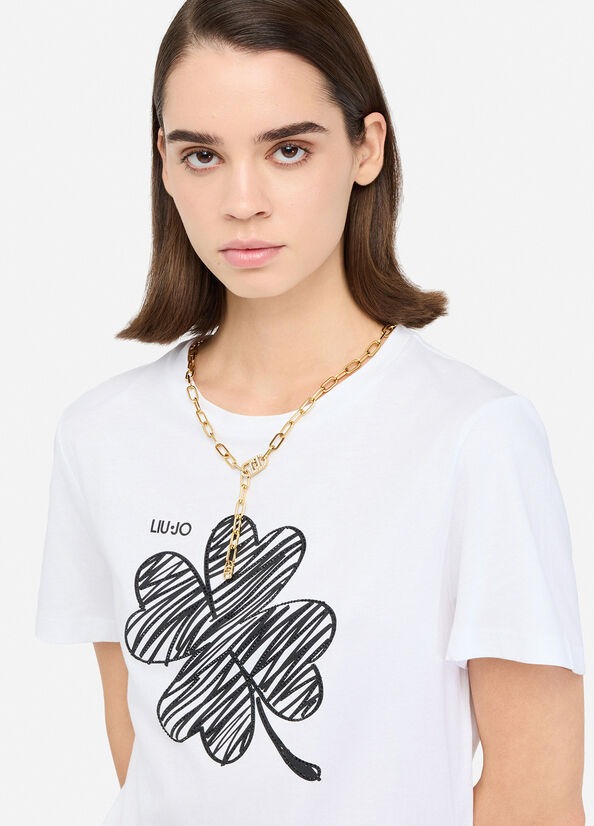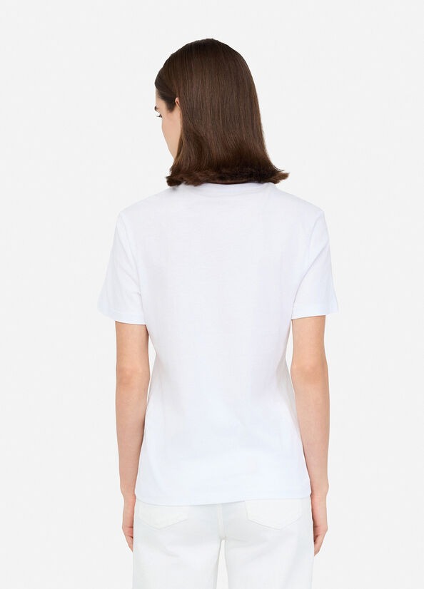 T-shirt in jersey di cotoneGirocolloManiche corteStampa e strass applicati