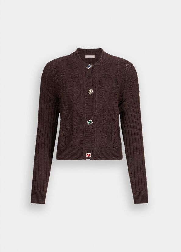 Cardigan in magliaFilati in lanaLavorazione a trecceScollo a VChiusura con bottoni gioiello