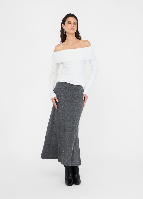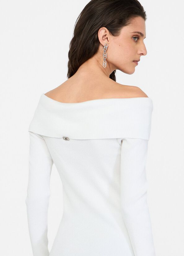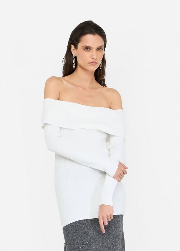 Maglia da donna in misto viscosa Lavorazione a coste inglesi Taglio off-shoulder con spalle scoperte Prodotto "Liu Jo Better"