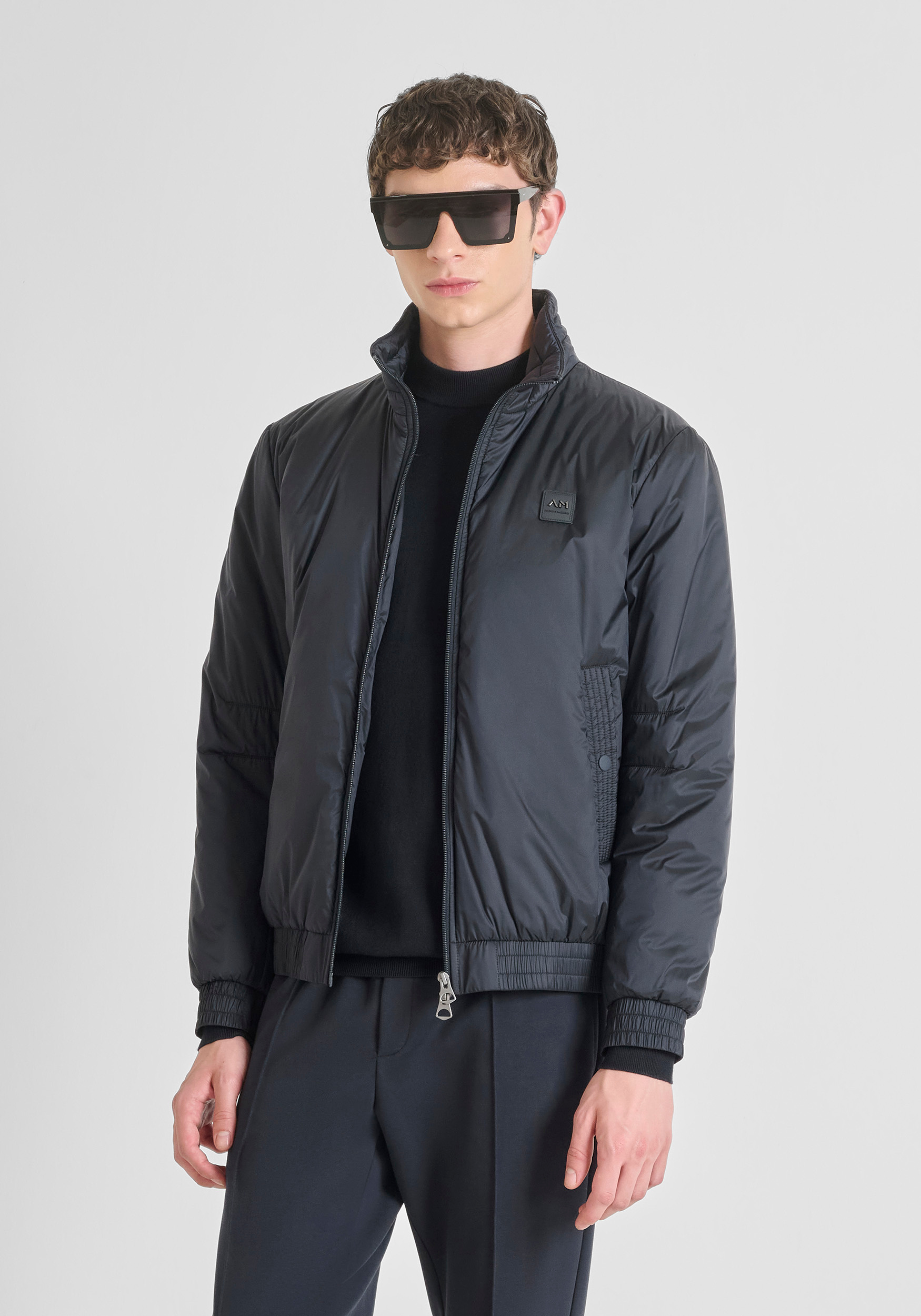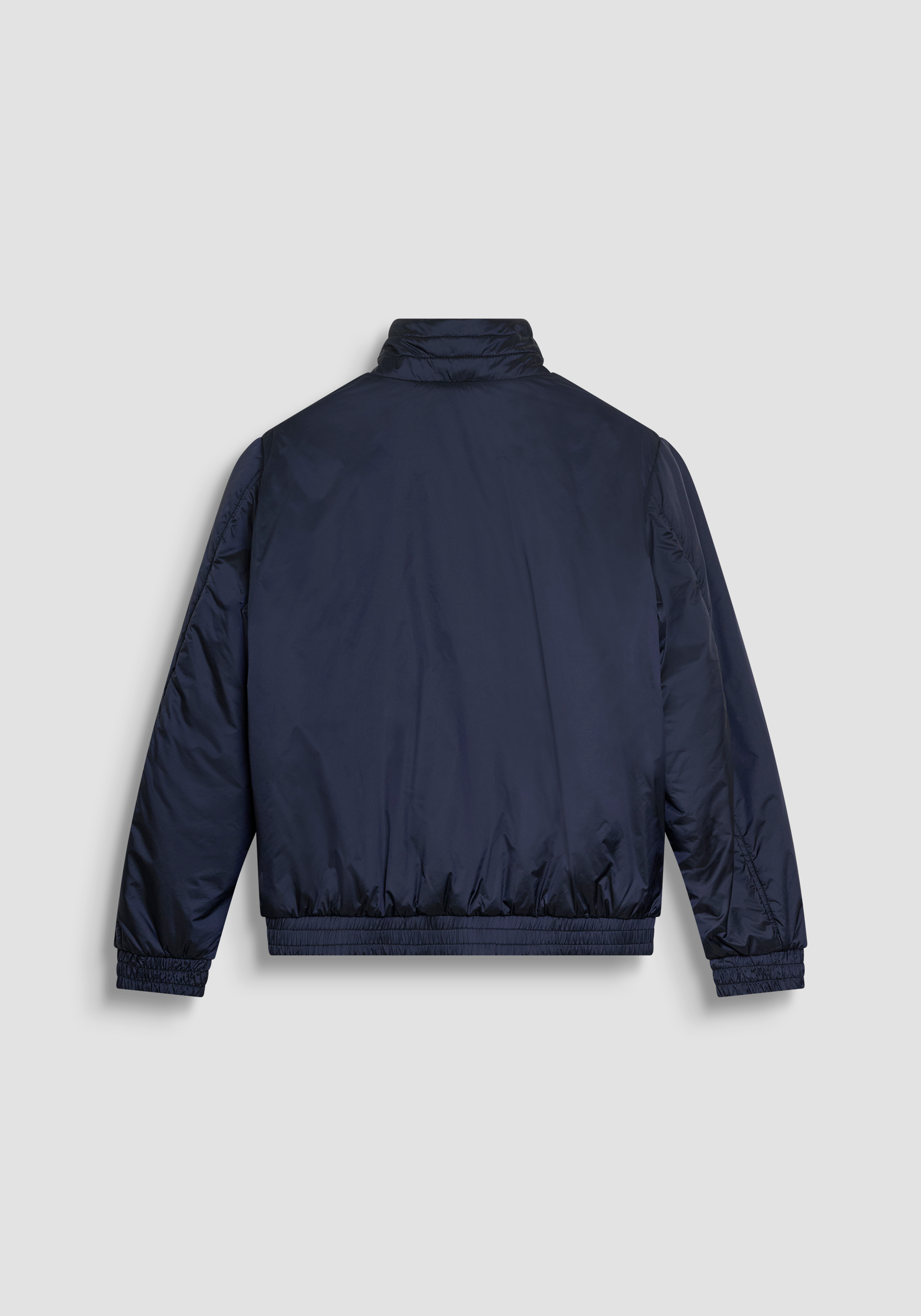 Giacca bomber dalla vestibilità regular fit, realizzato in tessuto in nylon dall'aspetto brillante. Dotato di morbida e leggera eco-imbottitura DuPont Sorona®, che è riconosciuta per le elevate prestazioni tecniche in termini di elasticità, mantenimento delle forme e soprattutto per l'elevato comfort termico. Questo tessuto conferisce al capo resistenza e versatilità, sia estetica che funzionale. Chiusura frontale a zip con doppio cursore, due tasche frontali a filetto. Patch logata applicata sul davanti. Il modello si rivela perfetto per affrontare i primi freddi di stagione.