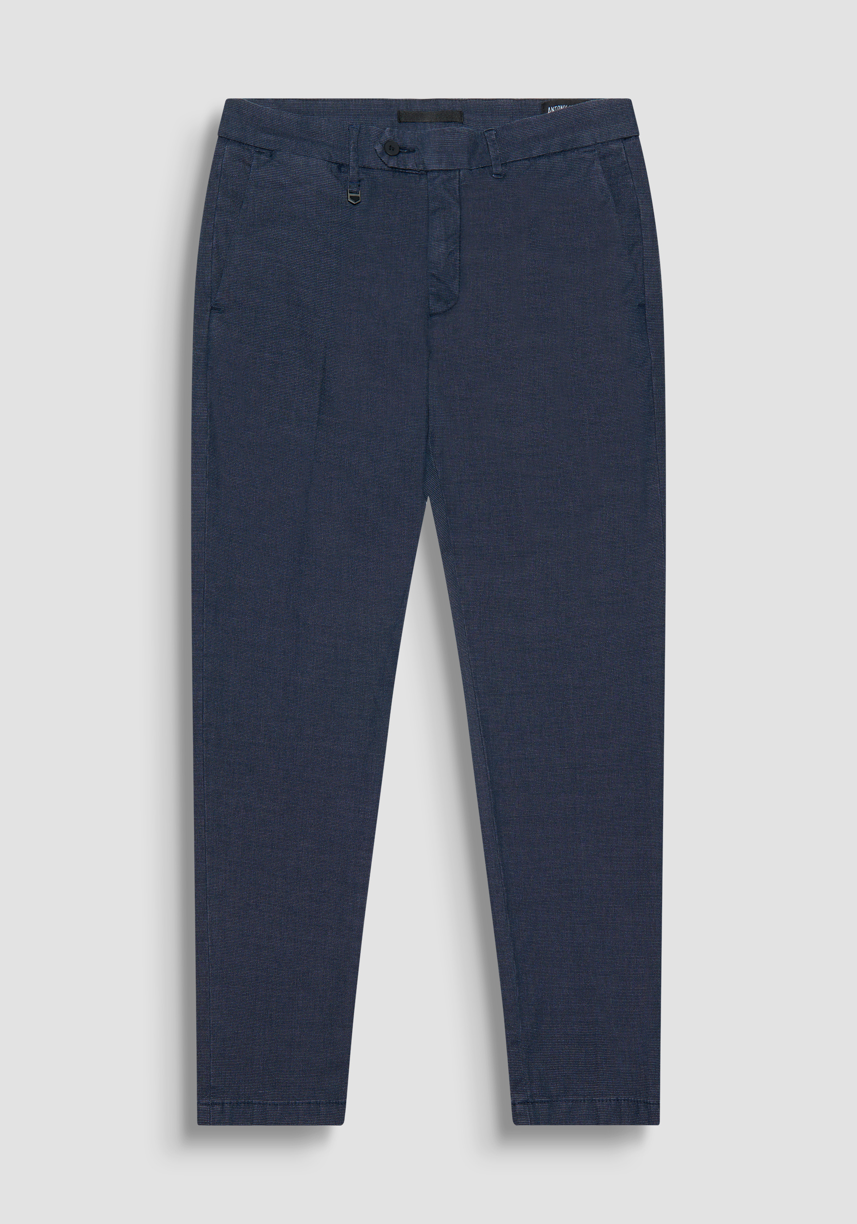 Classici ed eleganti, questi pantaloni griffati Antony Morato sono realizzati con una vestibilità aderente, perfetti per chi desidera mettere in risalto la figura. Il modello presenta quattro tasche: due sui fianchi e due a filetto con bottone sul retro. La chiusura è regolata da una zip nascosta e bottone laterale.