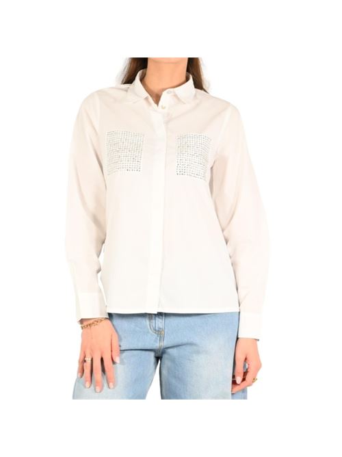 T-shirt a tinta unita e maniche lunghe con polsini ampi, chiusura centrale tramite bottoni, colletto classico