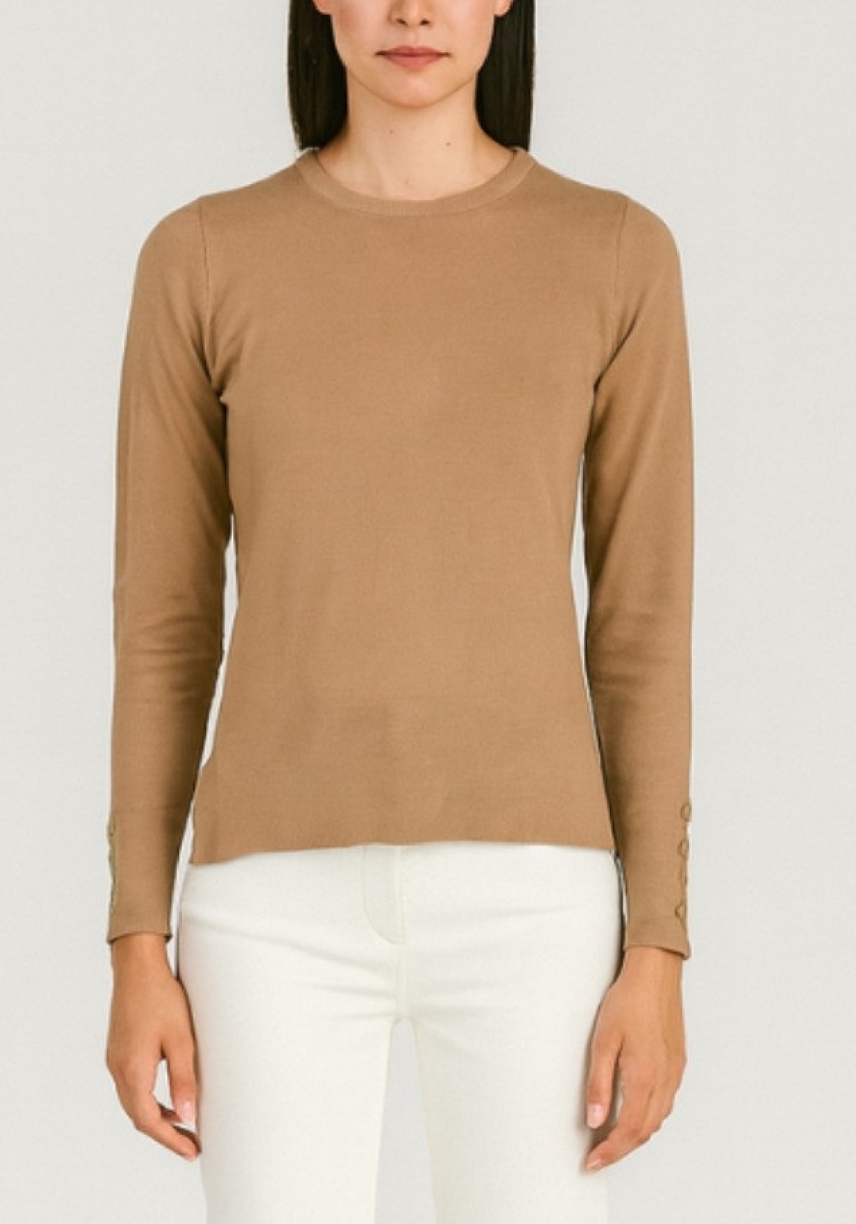* Maglia a maniche lunghe* Modello con scollo tondo* Dettaglio con bottoni ai polsini
