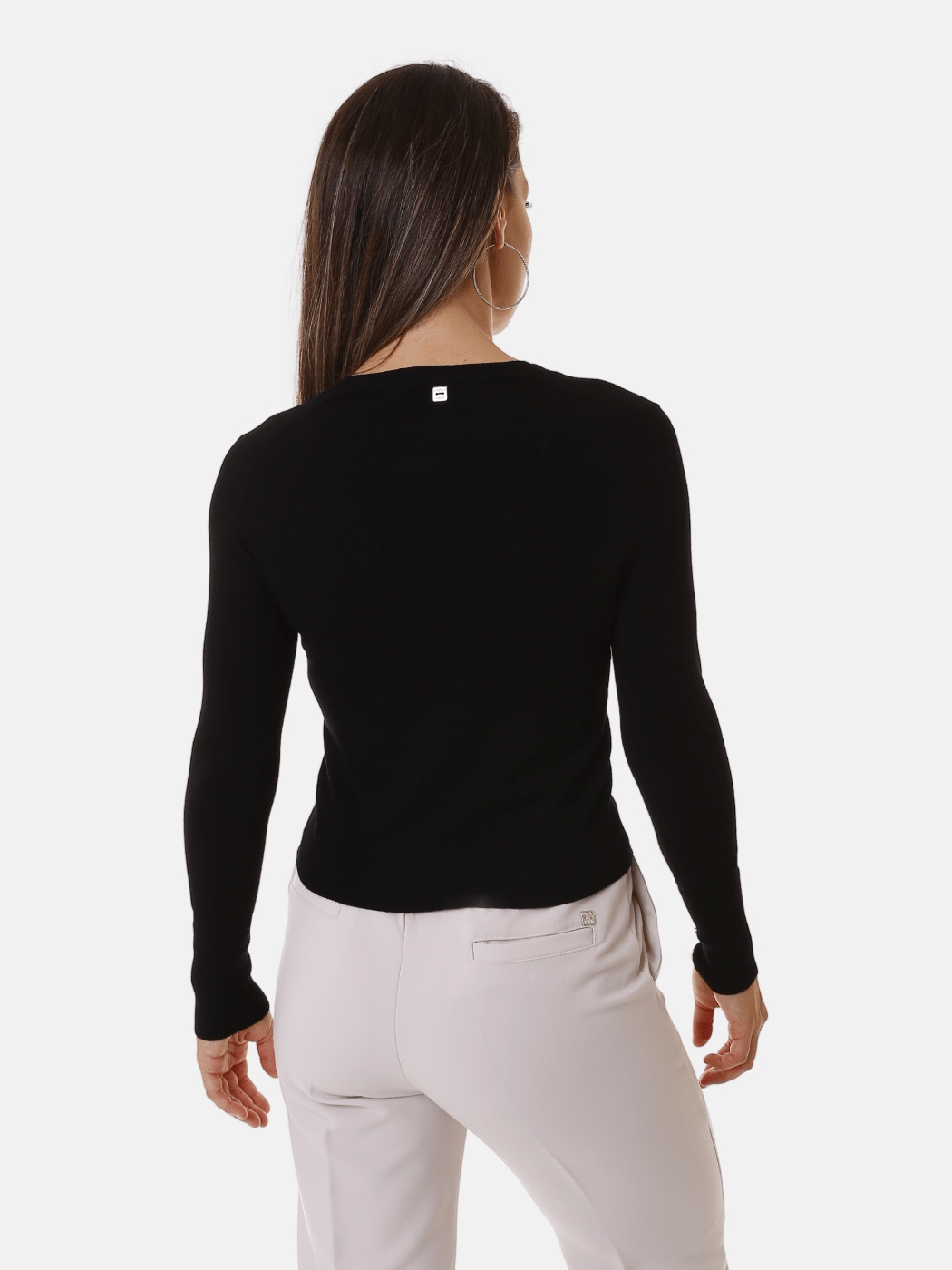 Cardigan scollo V in viscosa manica lunga con polsini, bottoni in tinta