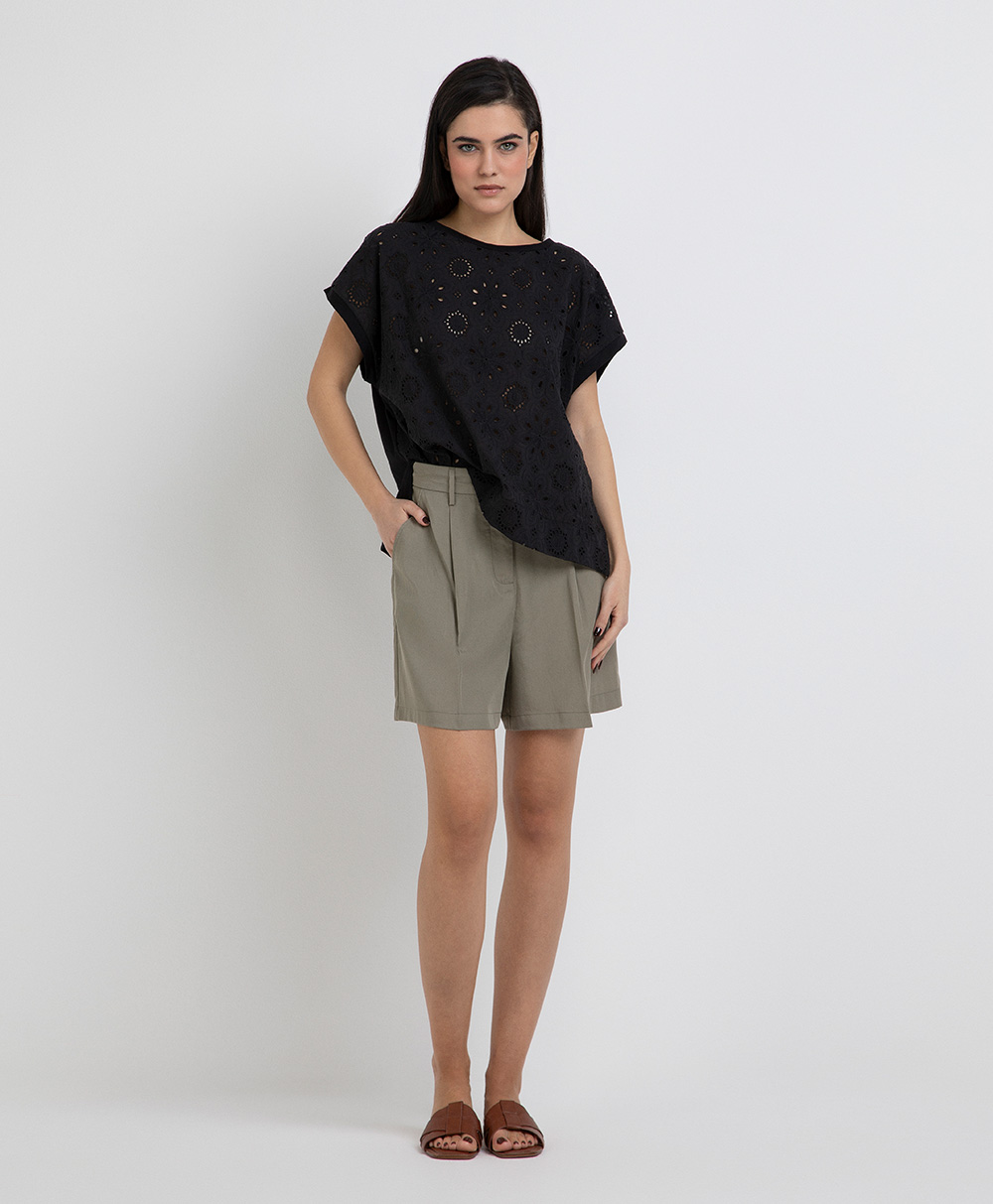 Shorts con passanti e placchetta in metallo, in tessuto fluido.