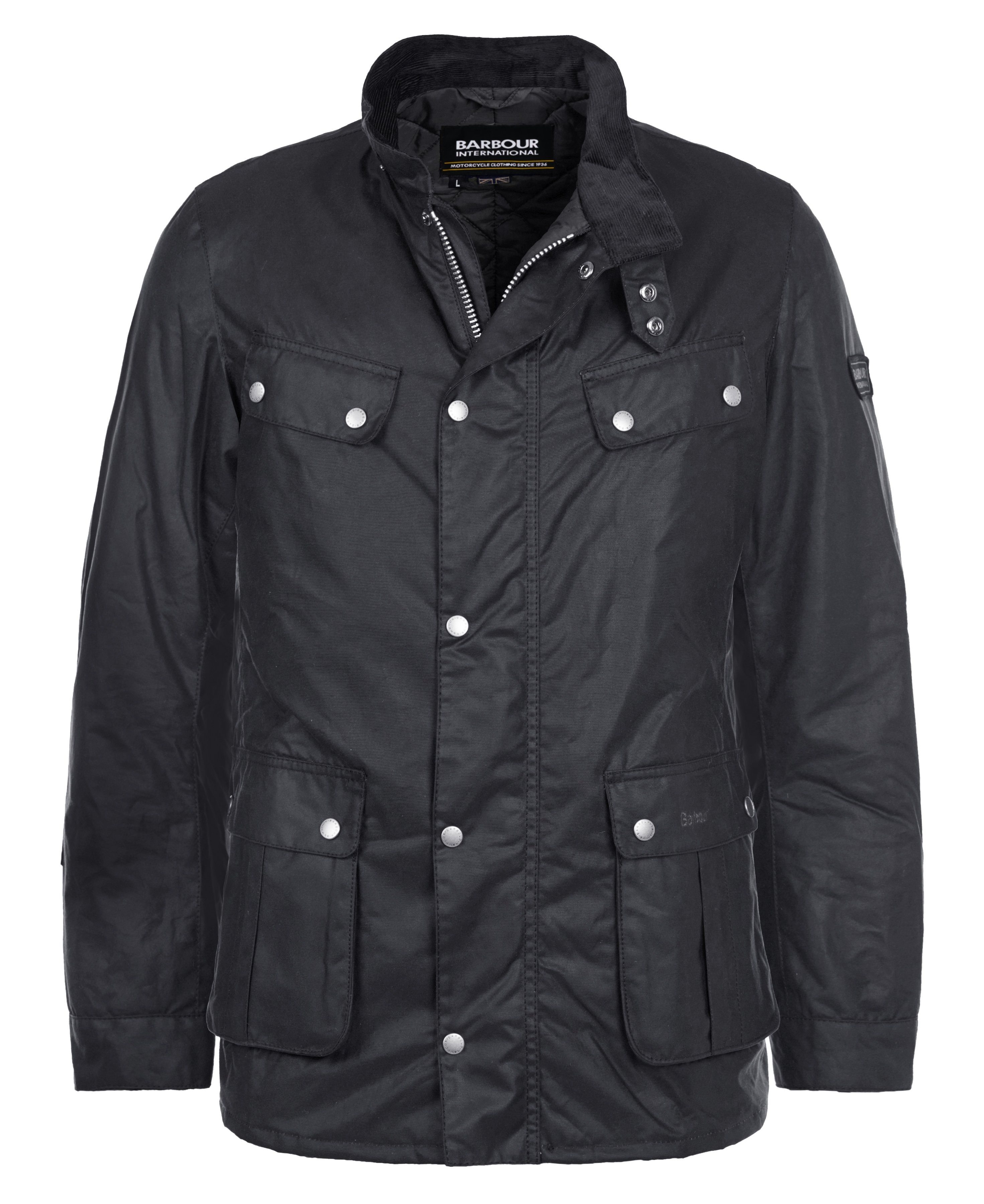 La giacca Barbour International Duke Wax rielabora l'iconico stile Enfield per un robusto capo isolante invernale. Realizzato in cotone cerato Thornproof, rimane fedele all'estetica biker con quattro tasche esterne e toppe sui gomiti.