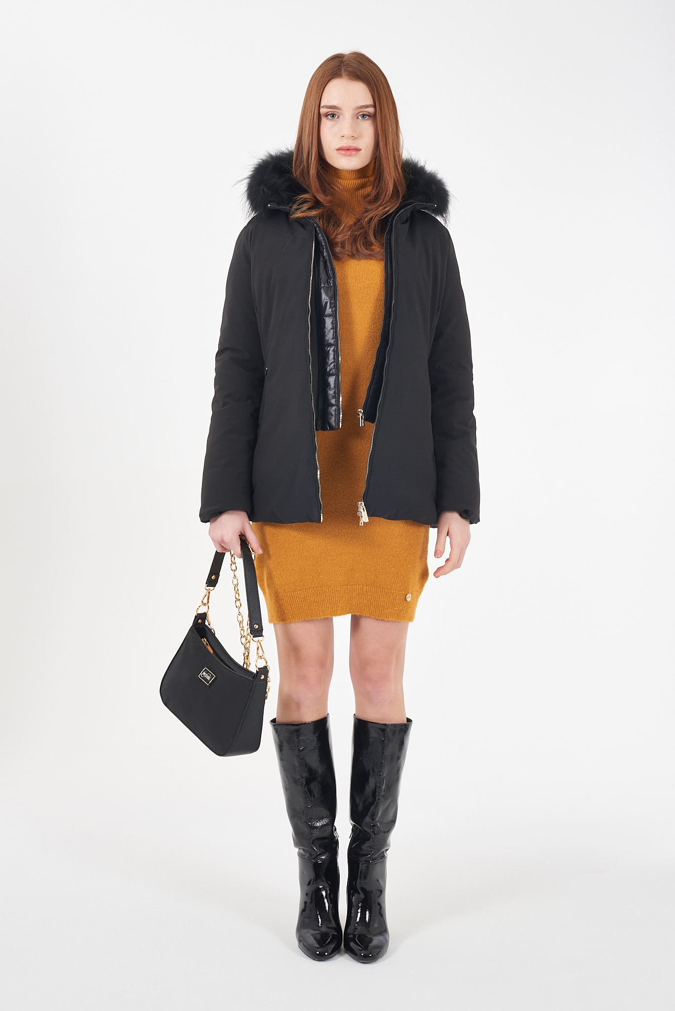* Cappuccio con bordo in eco pelliccia removibile