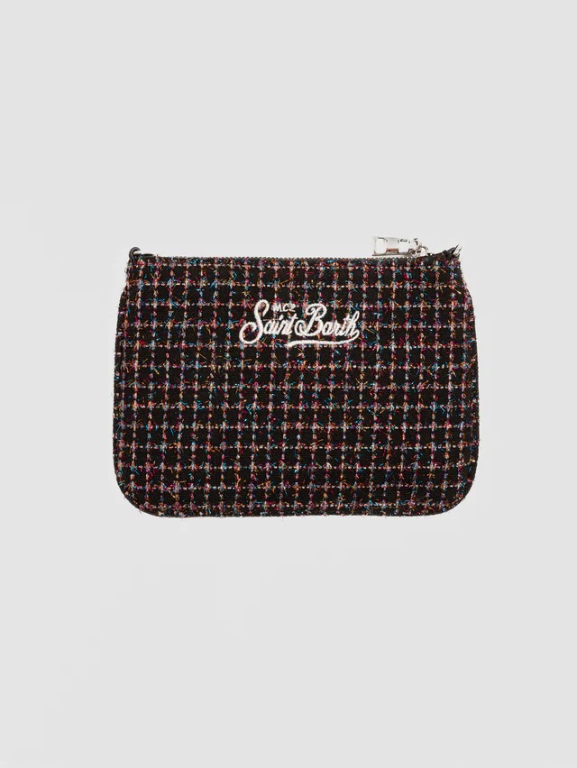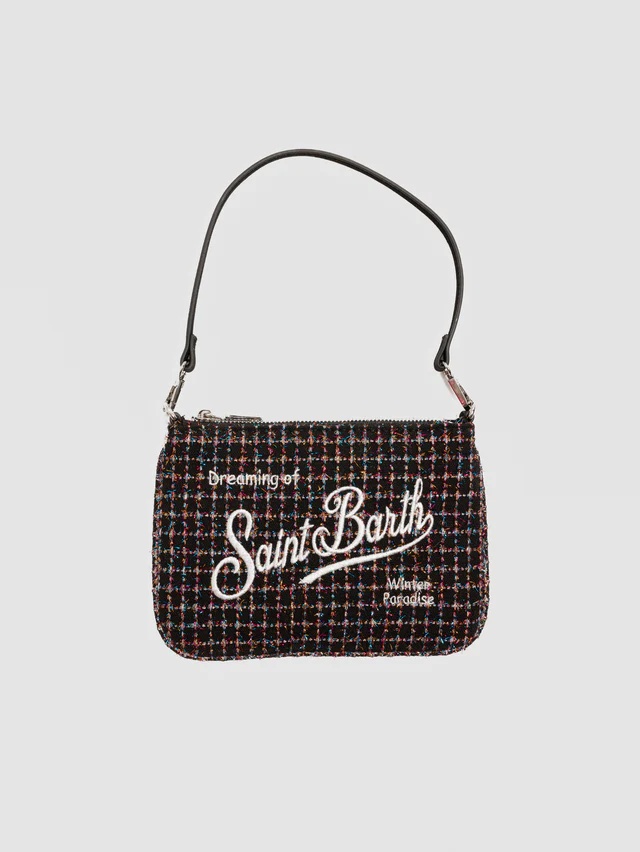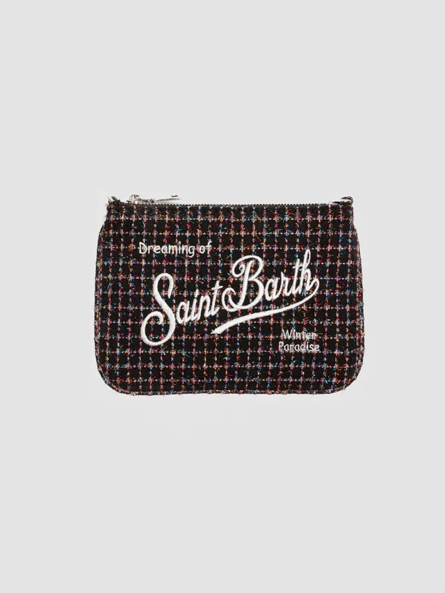 Pouch a spallaModello Parisienne MiniPouch con lavorazione tweed in lurexLogo Saint Barth ricamatoChiusura con zipManico removibileTracolla removibile