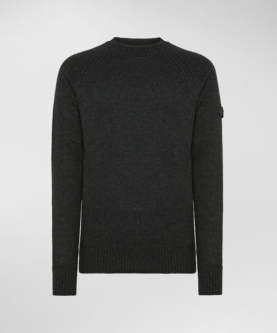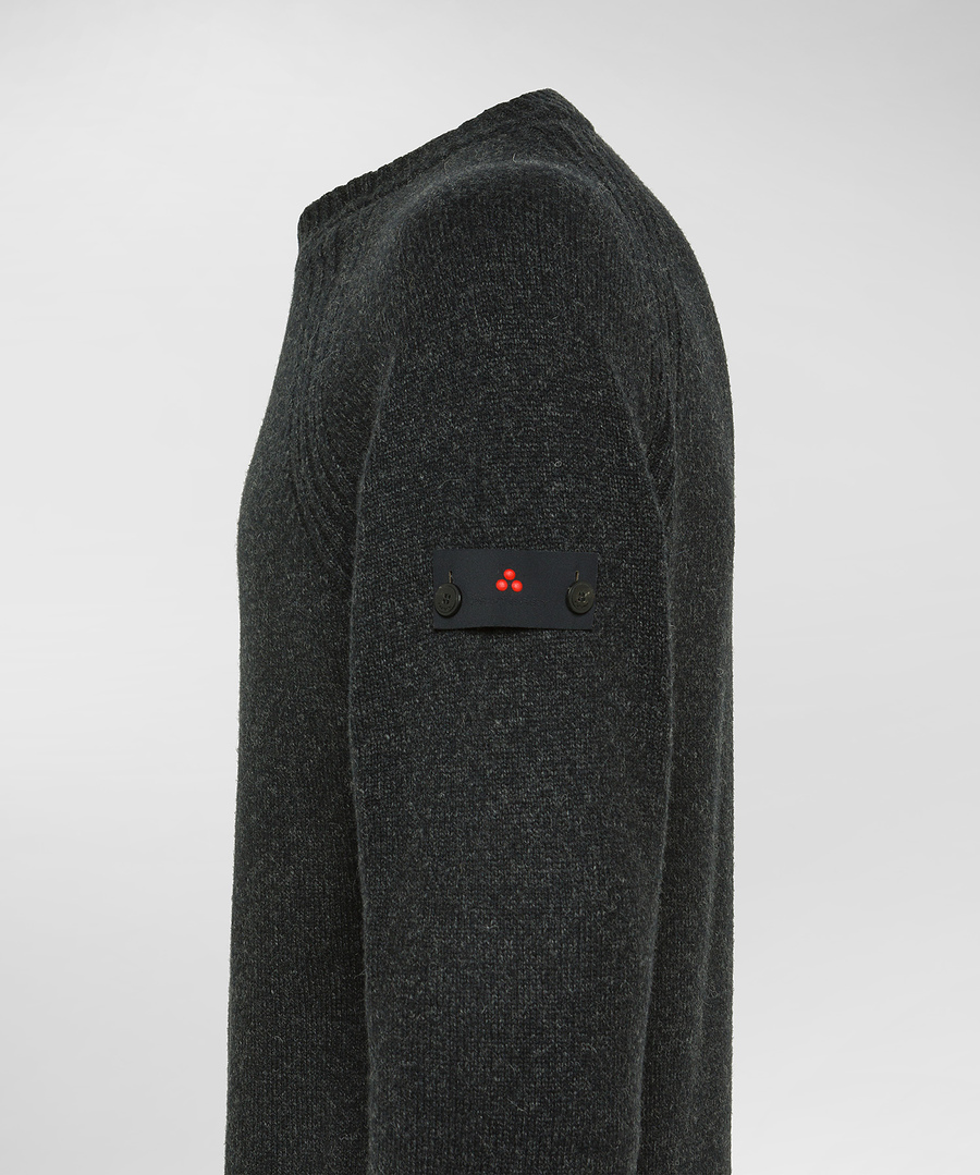 Maglia paricollo, a maniche lunghe, in tricot misto lana mouliné, dalla mano calda e morbidissima. Il collo, i polsini e il fondo sono rifiniti con costine più larghe rispetto al capo. Fascetta portalogo staccabile sul braccio. Un look classico che interpreta con spirito giovane e dinamico lo sportswear metropolitano.