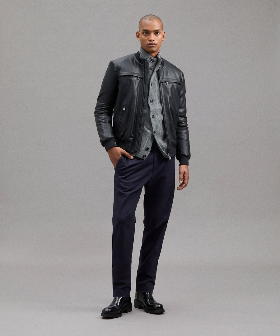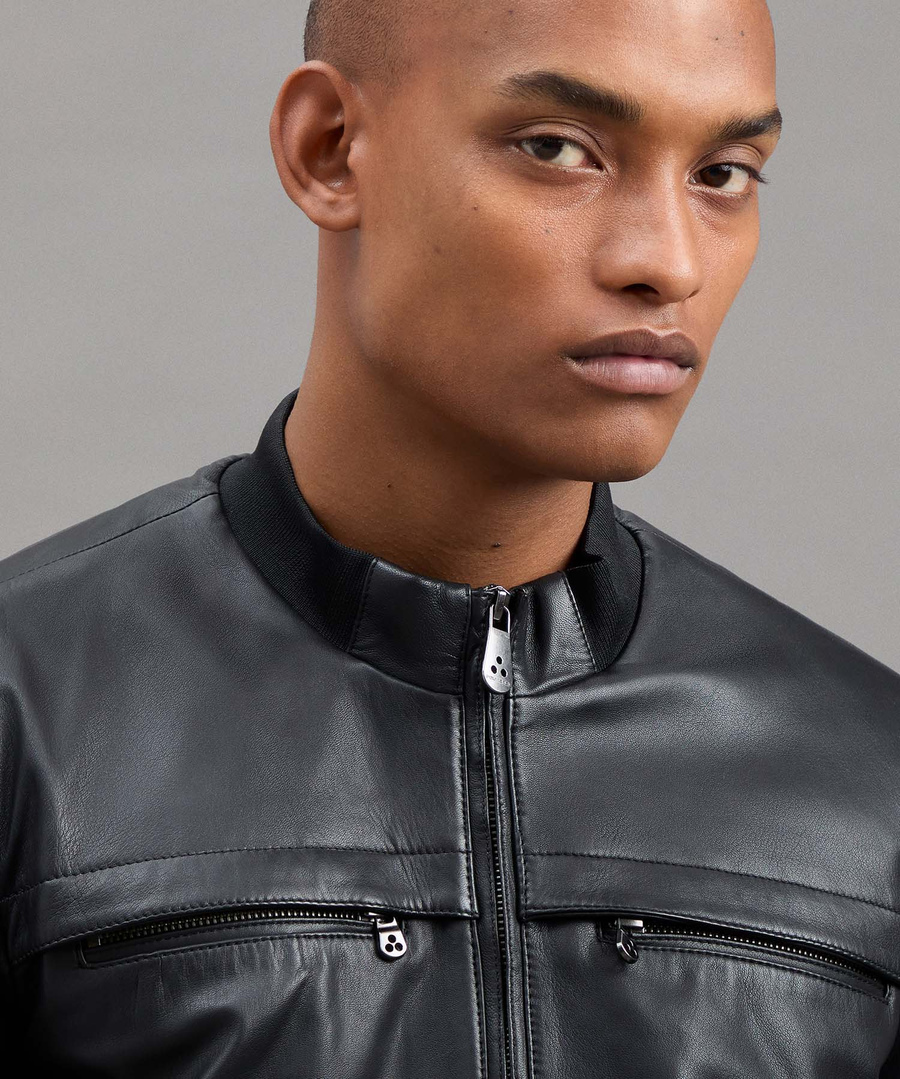 Giacca biker in morbida pelle, dal look informale e che acquista fascino nel tempo. Un’interpretazione minimalista e moderna di un’icona dell’abbigliamento maschile. I materiali pregiati e la meticolosa cura nei dettagli conferiscono un aspetto sartoriale e una vestibilità slim. Tasche alte a chiusura con zip, tasche laterali a filetto. Chiusura con zip centrale a doppio cursore, collo in piedi e polsini in maglia. Un classico senza tempo e sempre di tendenza.