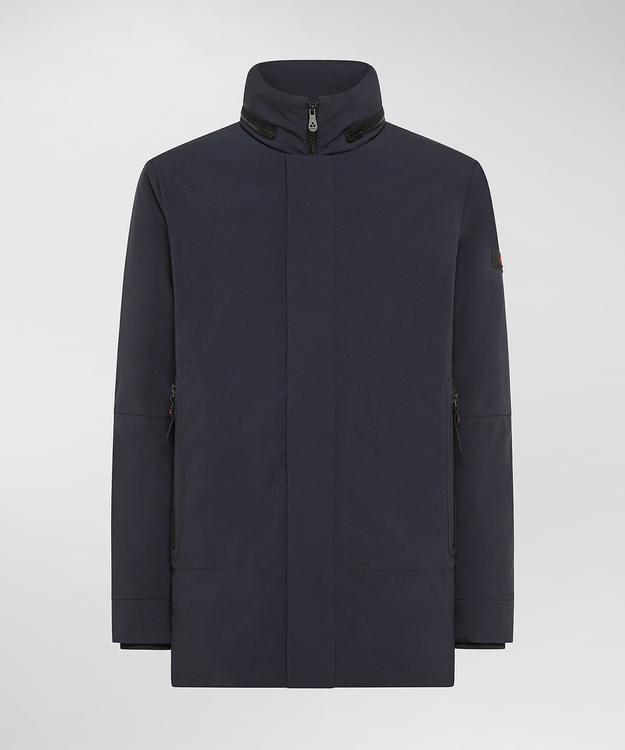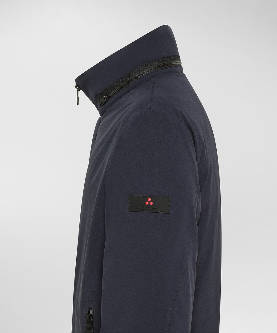 Overcoat in tela di poliestere stretch, accoppiata con un jersey di poliestere soffice e caldo, grazie alla finezza dei filati utilizzati. L’imbottitura in Thermoplume, prima vera alternativa sintetica al piumino d’oca, garantisce calore, leggerezza, morbidezza e comprimibilità e protezione anche in condizioni di umidità. Il cappuccio estraibile, nascosto all’interno del collo, offre un’ulteriore difesa contro pioggia e vento improvvisi. Parte della linea Color in cui i disegni geometrici prendono vita ed esaltano i piumini della sezione, un concept giocoso e ironico che reinterpreta il capospalla in modo creativo ed easy. La chiusura centrale con zip nera a doppio cursore, è protetta da una patta minimale, mentre le tasche laterali a filetto e i polsini antivento completano il design. Il trattamento idrorepellente PFC Free protegge dalle intemperie senza l’impiego di sostanze dannose per l’ambiente. Un capo outdoor dal clean look funzionale, ideale per affrontare le giornate più fredde con praticità e attitudine.