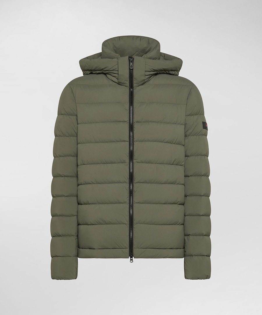 Piumino in nylon superleggero 20 denari, con finitura semiopaca e peso di soli 50 grammi. La trapunta a esalta la linea essenziale del capo, pensato per offrire massima leggerezza e protezione. L’imbottitura in piuma naturale certificata garantisce calore, traspirabilità e comfort durante la stagione fredda. Il tessuto è water repellent e down proof, con trattamento idrorepellente privo di PFC (composti fluorurati), per una protezione efficace senza impiego di sostanze nocive. Il design è completato da un cappuccio staccabile regolabile, collo in piedi e dettagli neri - full zip centrale a doppio cursore, tasche laterali invisibili, polsini antivento - che sottolineano il carattere sportivo e versatile. Con il suo stile informale e vestibilità regular, è il piumino ideale per accompagnarti in ogni momento della giornata e sentirsi sempre a proprio agio, 24/7.