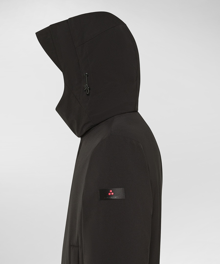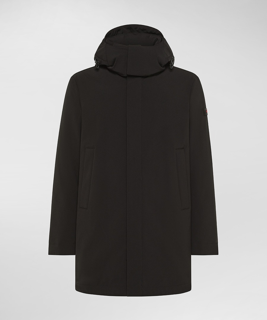 Trench liscio e tecnico in tessuto stretch di poliestere riciclato con struttura twill, dall’aspetto pulito ed opaco. Il leggero coating sul rovescio dona corpo al tessuto e mantiene una mano morbida, migliorando la tenuta piuma e assicurando proprietà antivento e idroreppellenti. Il design essenziale è completato da collo in piedi, fodera interna check, cappuccio staccabile, zip nascosta a doppio cursore e due ampie tasche laterali. Le linee essenziali di questo capo dalla vestibilità regular reinterpretano lo stile classico, intramontabile e senza tempo di un cappotto tecnico da uomo dalle elevate performance. Adatto a proteggersi dal freddo della stagione invernale grazie all’imbottitura sintetica, è un capo must-have che valorizza qualsiasi tipo di outfit.