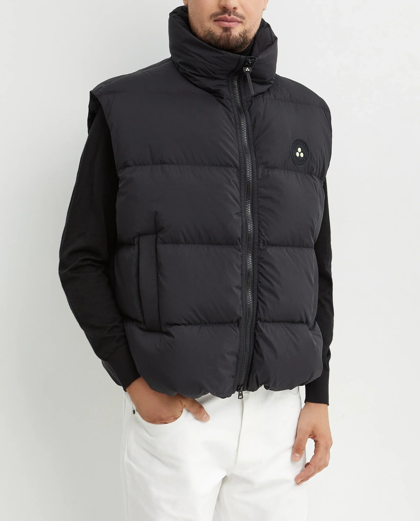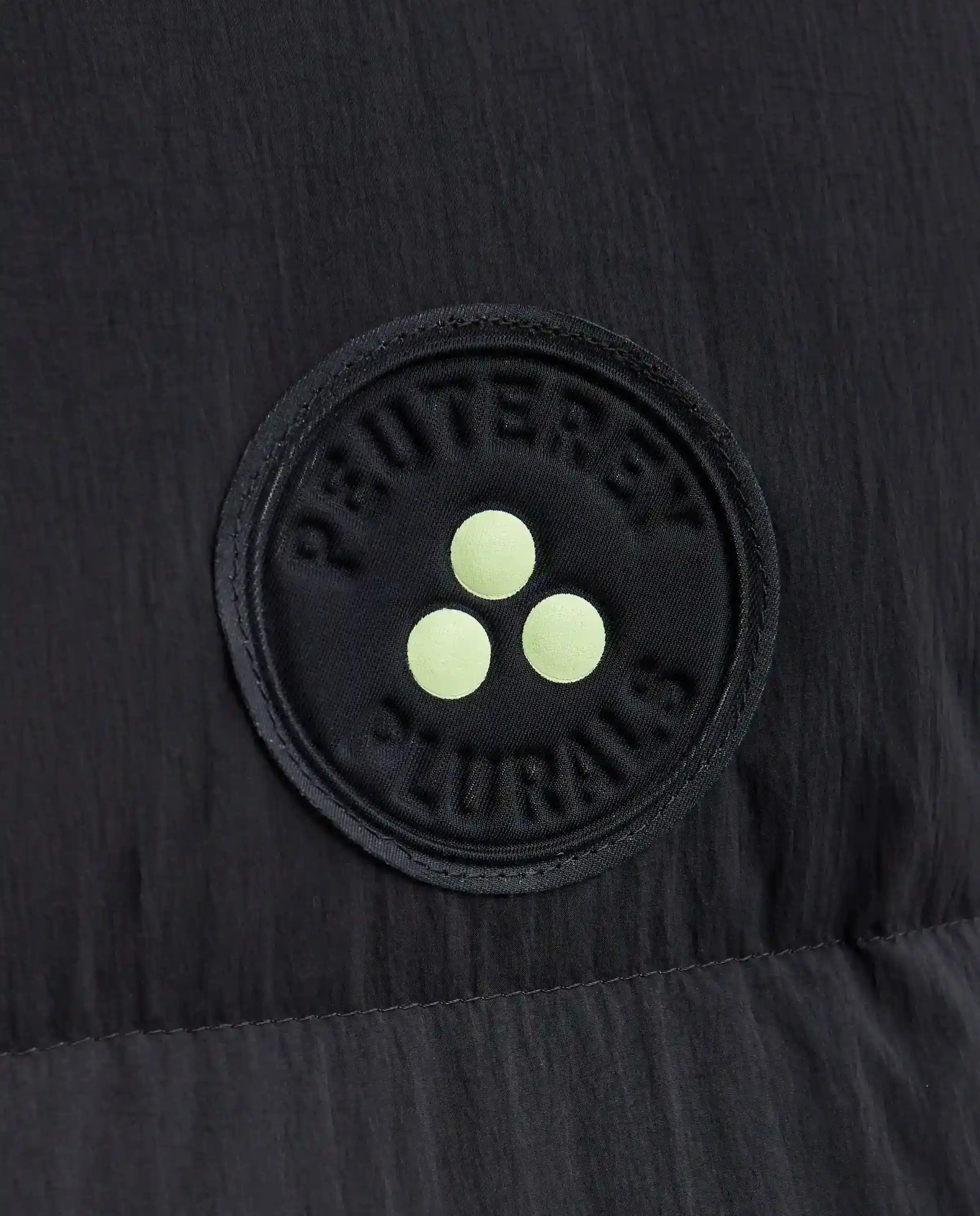 Gilet del marchio Peutereyin nerotrapuntatura imbottita di piuminochiuso con una cernieratoppa con logo sul petto sinistrocollo alto