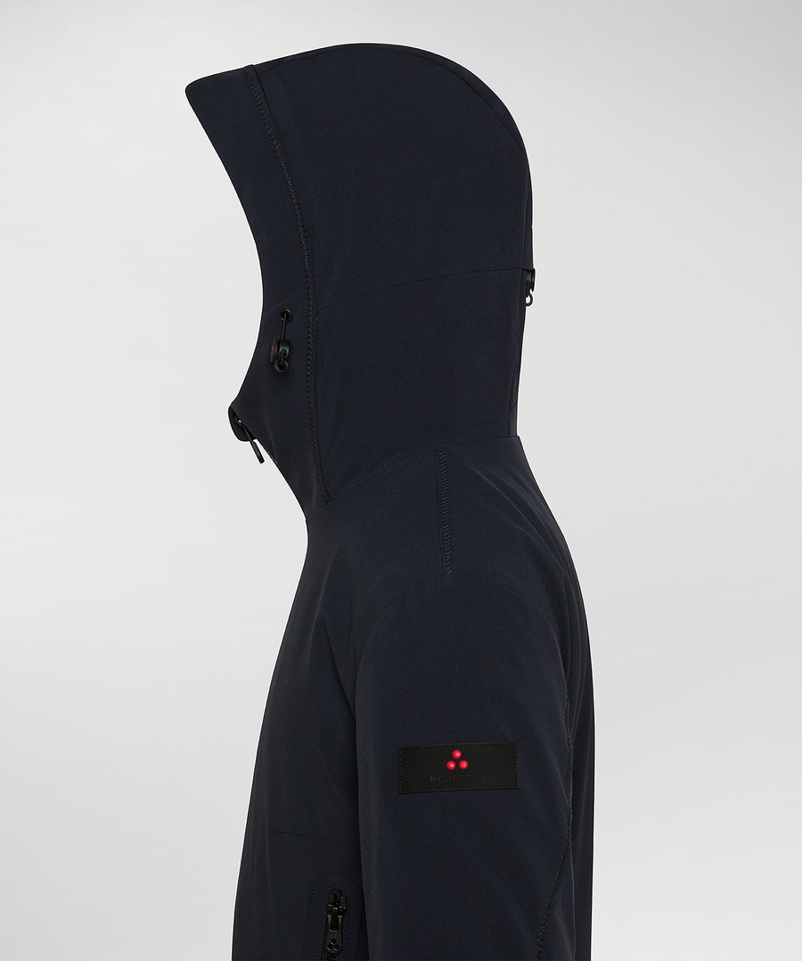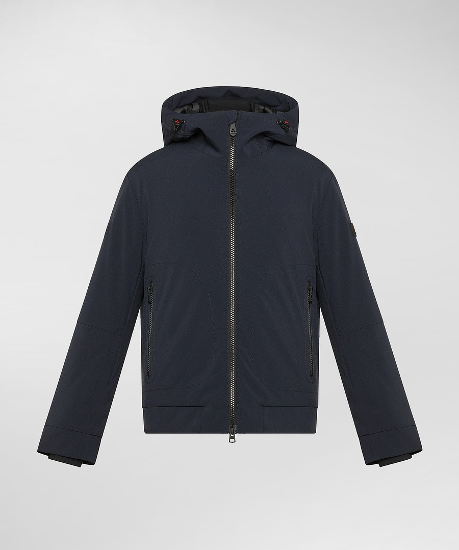 In poliestere stretch e jerseyImbottitura sinteticaCappuccio fisso regolabileTrattamento idrorepellente PFC freePolsini antiventoZip, polsini e dettagli neri in contrasti
