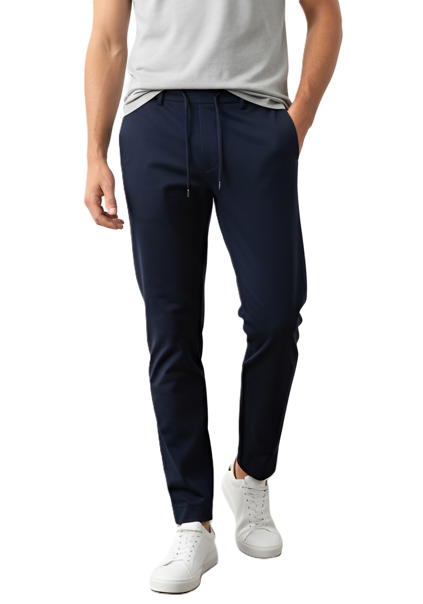 * Pantaloni con vestibilità affusolata* Chiusura con laccio regolabile in vita* Tasche laterali oblique* Tessuto liscio e confortevole* Fondo dal taglio pulito* Design essenziale e moderno